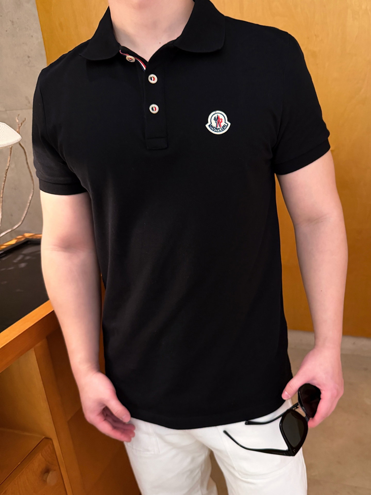 MONCLER logo polo-neck loose T-SHIRT Black モンクレール logo polo-ネック ゆったり Tシャツ ブラック