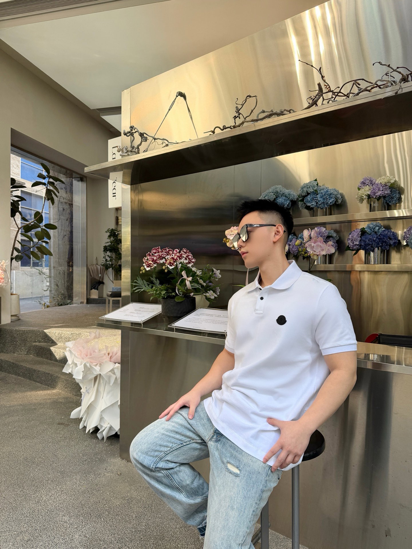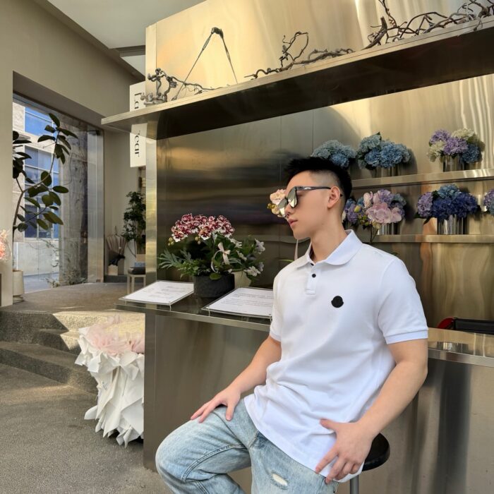 MONCLER logo polo-neck loose T-SHIRT White モンクレール logo polo-ネック ゆったり Tシャツ ホワイト