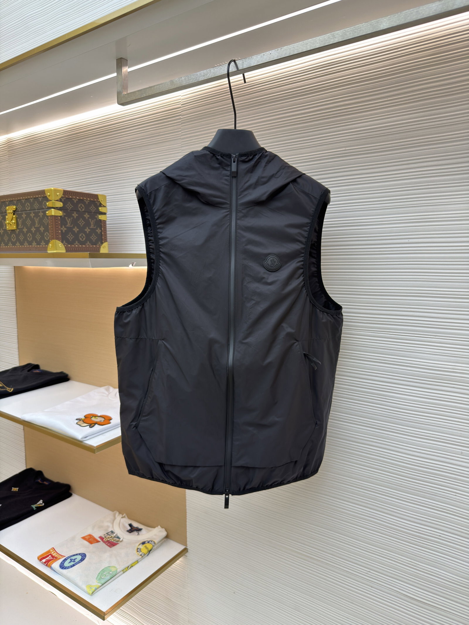 MONCLER LOGO ZIP-UP nylon jacket VEST Black モンクレール LOGO ジップアップ ナイロンジャケット ベスト ブラック