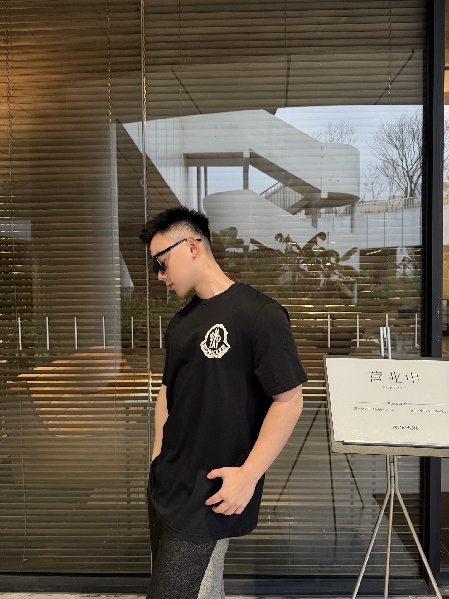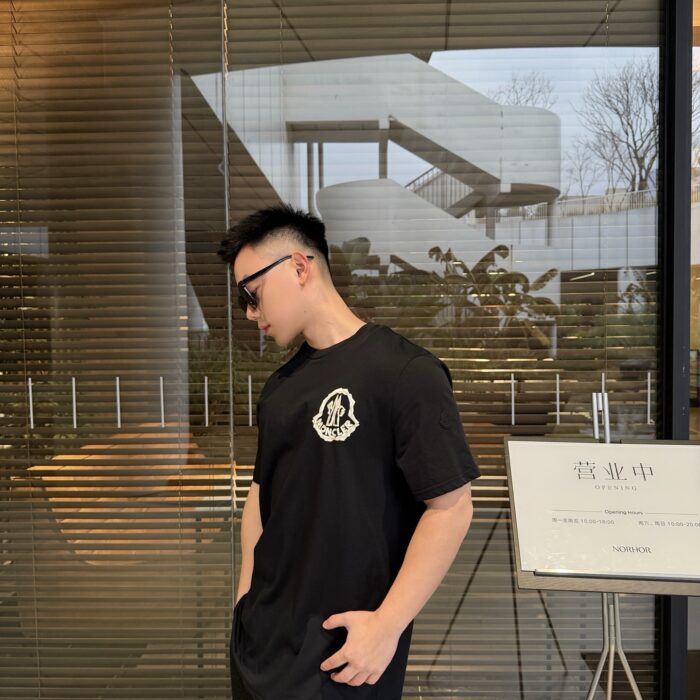 MONCLER Print Letter logo pattern Round neck loose T-SHIRT Black モンクレール プリント モジ logo パターン クルーネック ゆったり Tシャツ ブラック