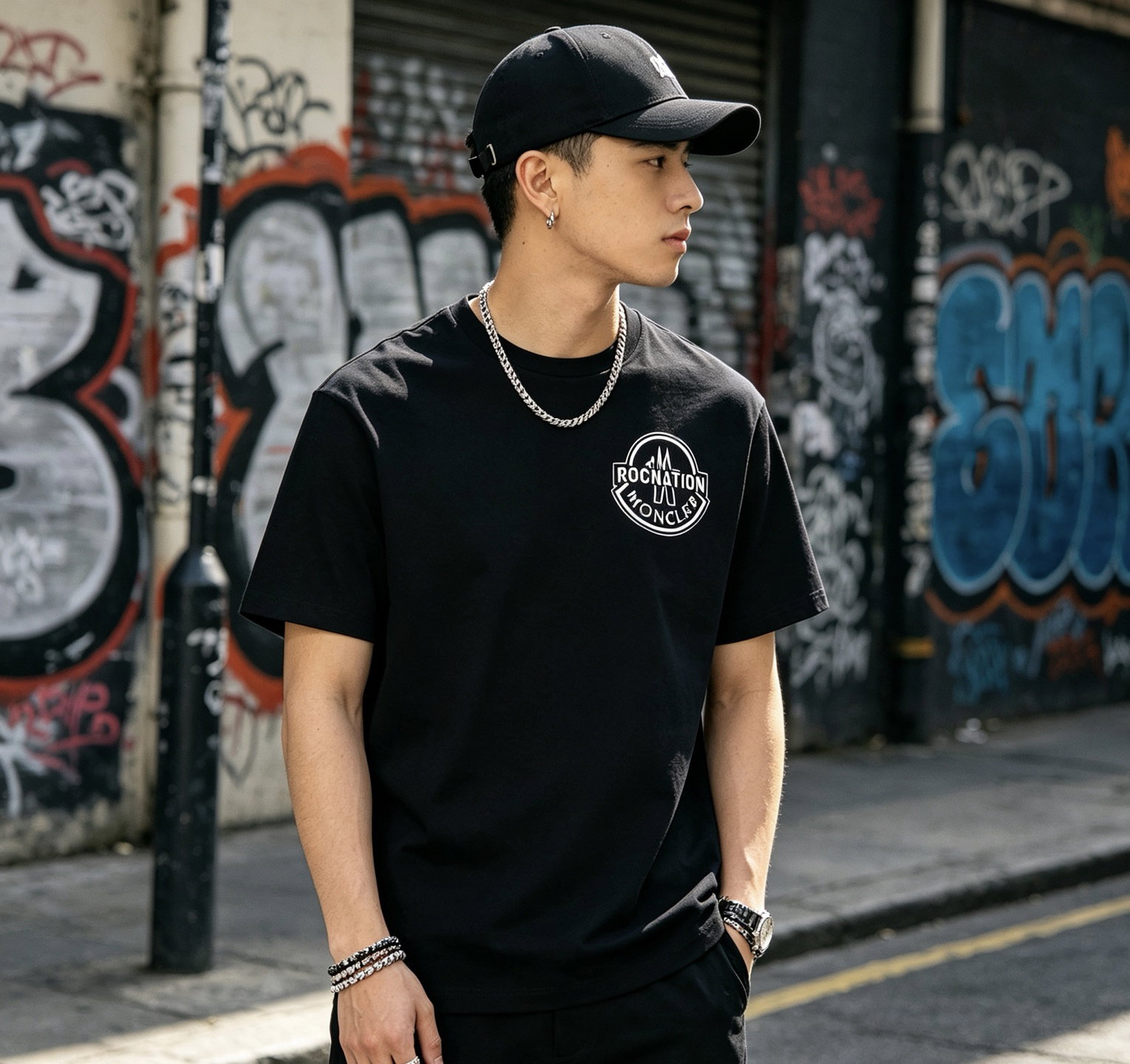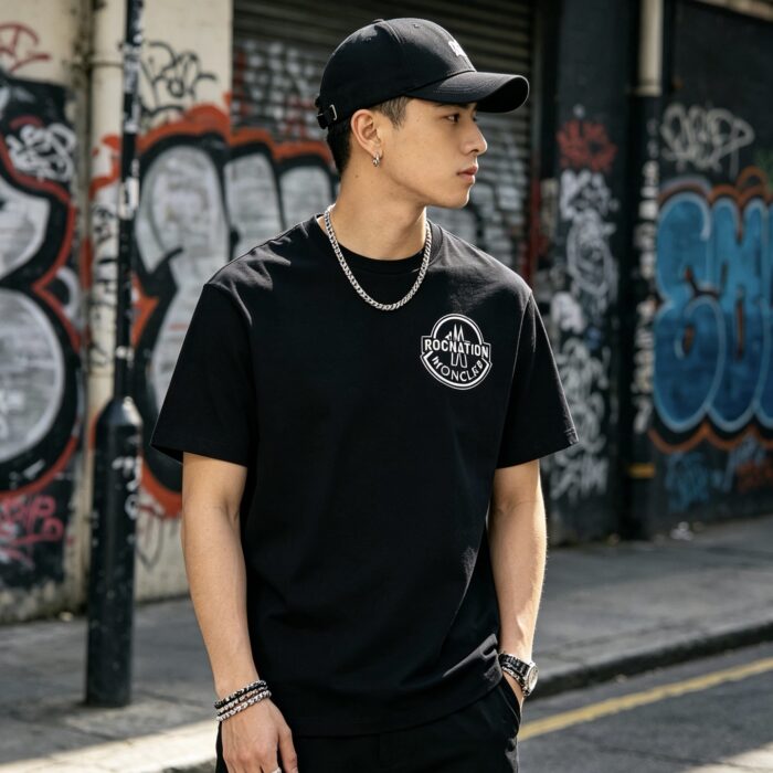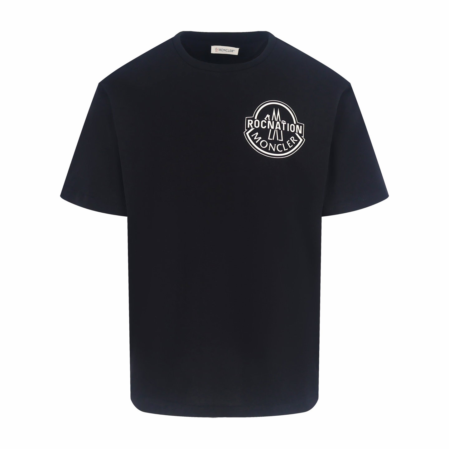 MONCLER Print pattern Round neck loose T-SHIRT Black モンクレール プリント パターン クルーネック ゆったり Tシャツ ブラック