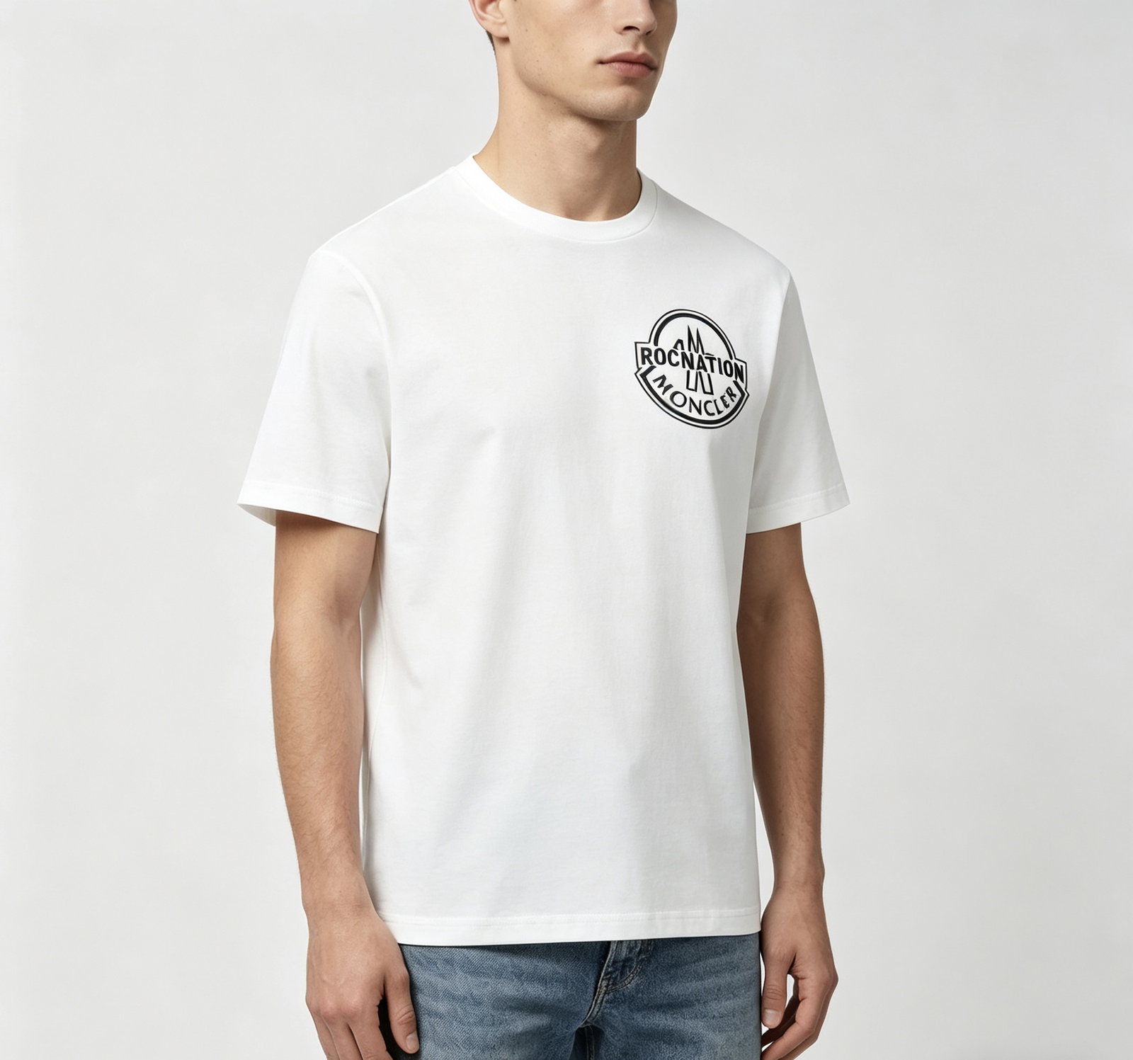 MONCLER Print Letter logo Round neck loose T-SHIRT White モンクレール プリント モジ logo クルーネック ゆったり Tシャツ ホワイト