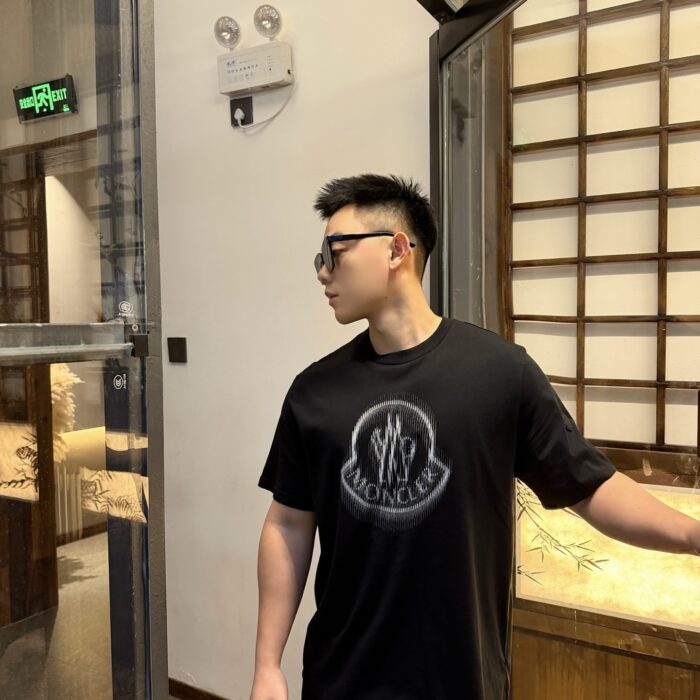 MONCLER Embroidery pattern Round neck T-SHIRT Black モンクレール 刺繍 パターン クルーネック Tシャツ ブラック