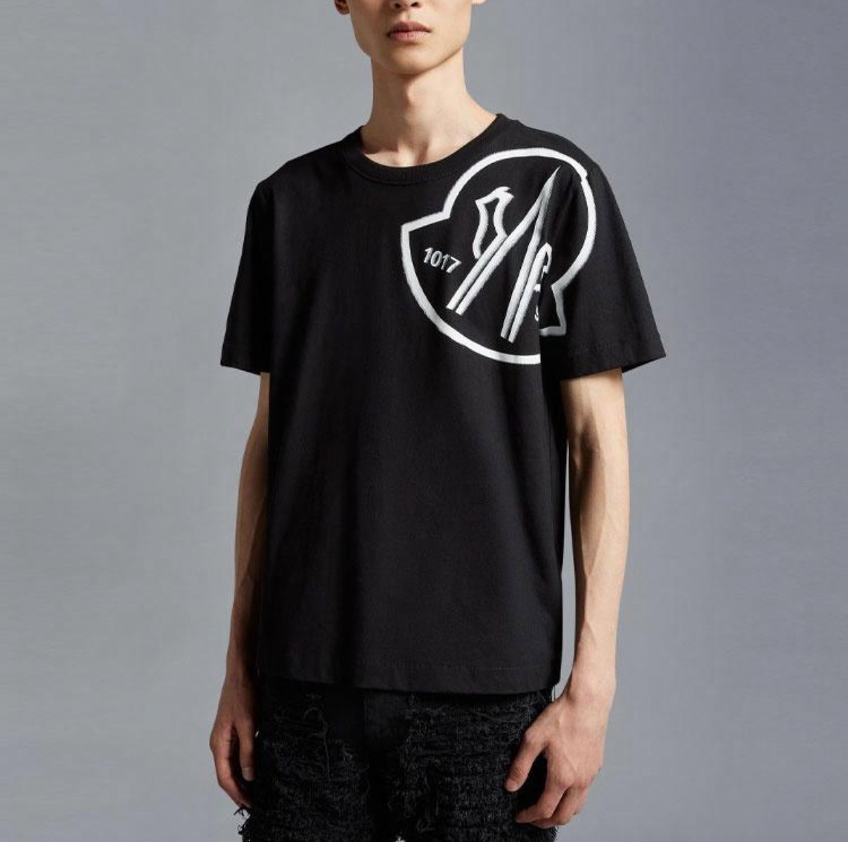 MONCLER Print splashed ink pattern Round neck T-SHIRT Black モンクレール プリント 泼墨 パターン クルーネック Tシャツ ブラック