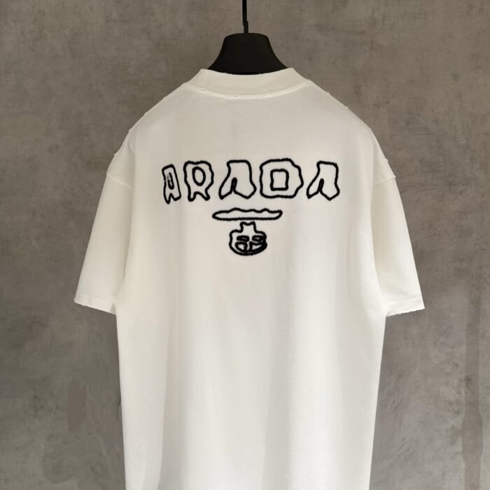 PRADA Embroidery logo loose Round neck T-shirt White プラダ 刺繍 logo ゆったり クルーネック Tシャツ ホワイト