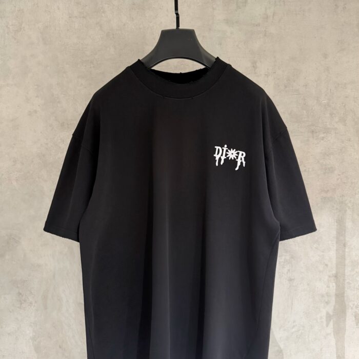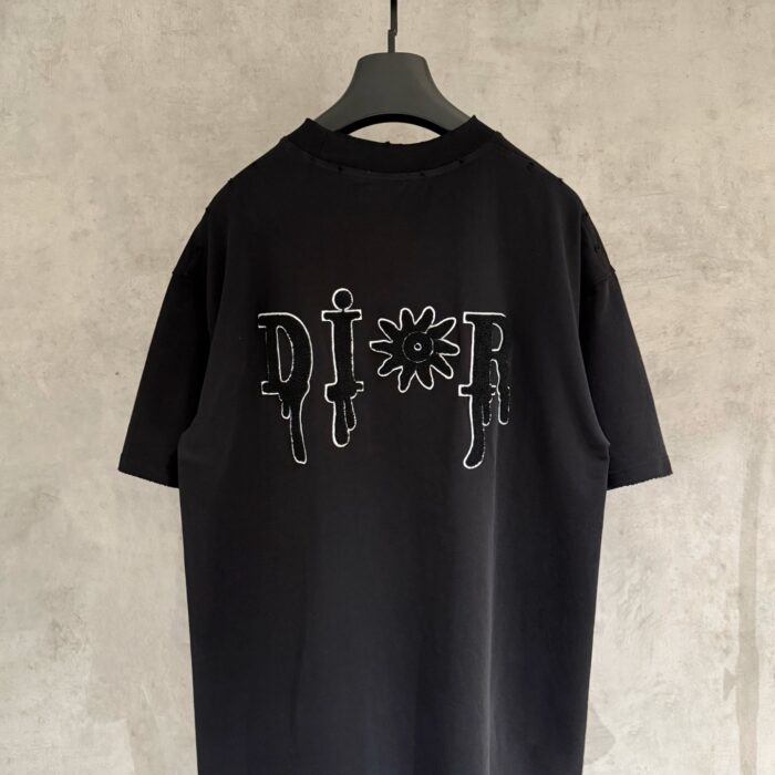 DIOR patch Embroidery Letter pattern logo loose Round neck T-shirt Black ディオール アップリケ 刺繍 モジ パターン logo ゆったり クルーネック Tシャツ ブラック