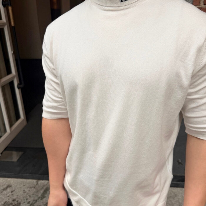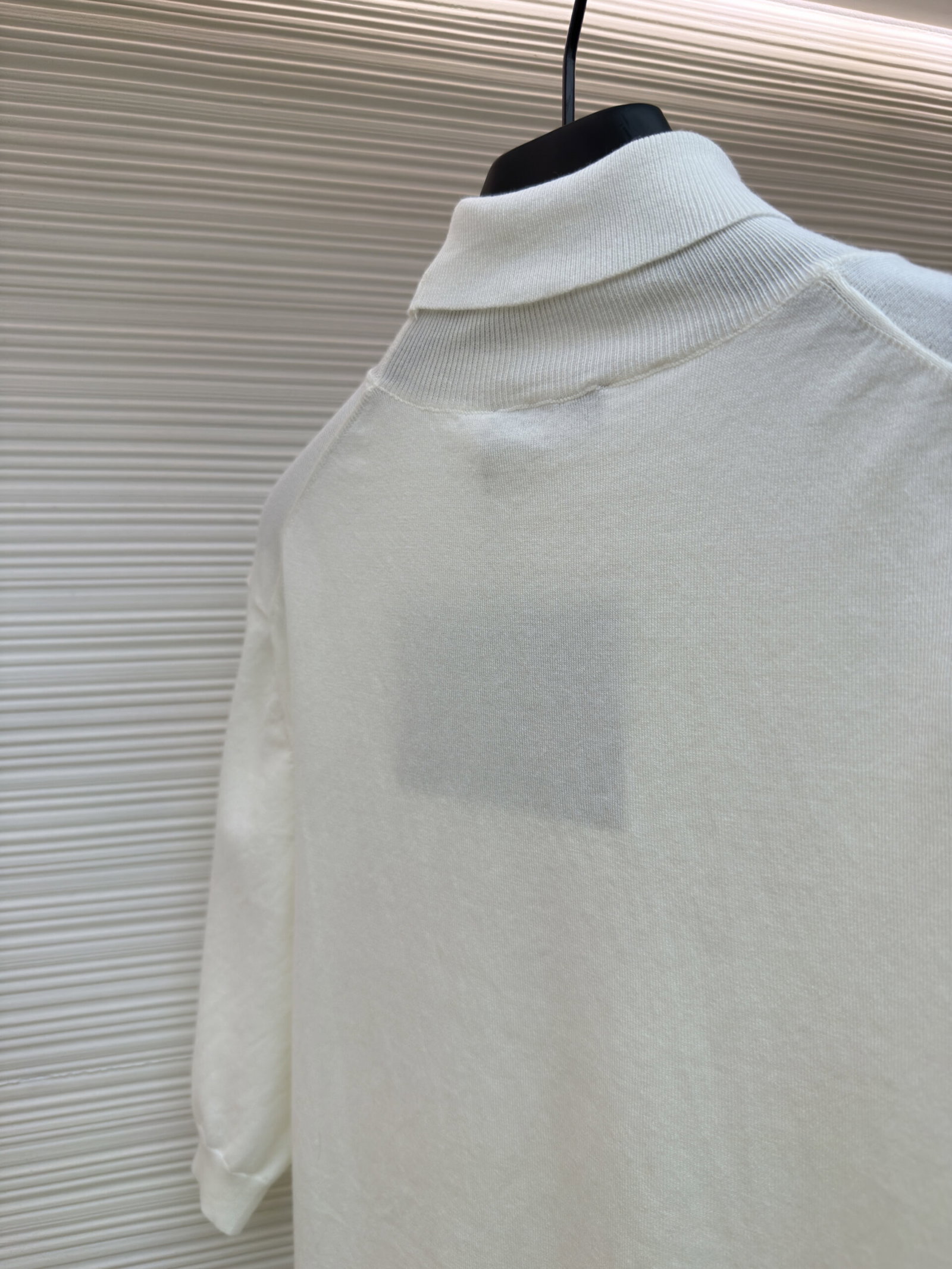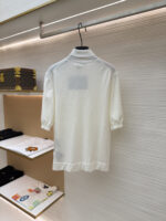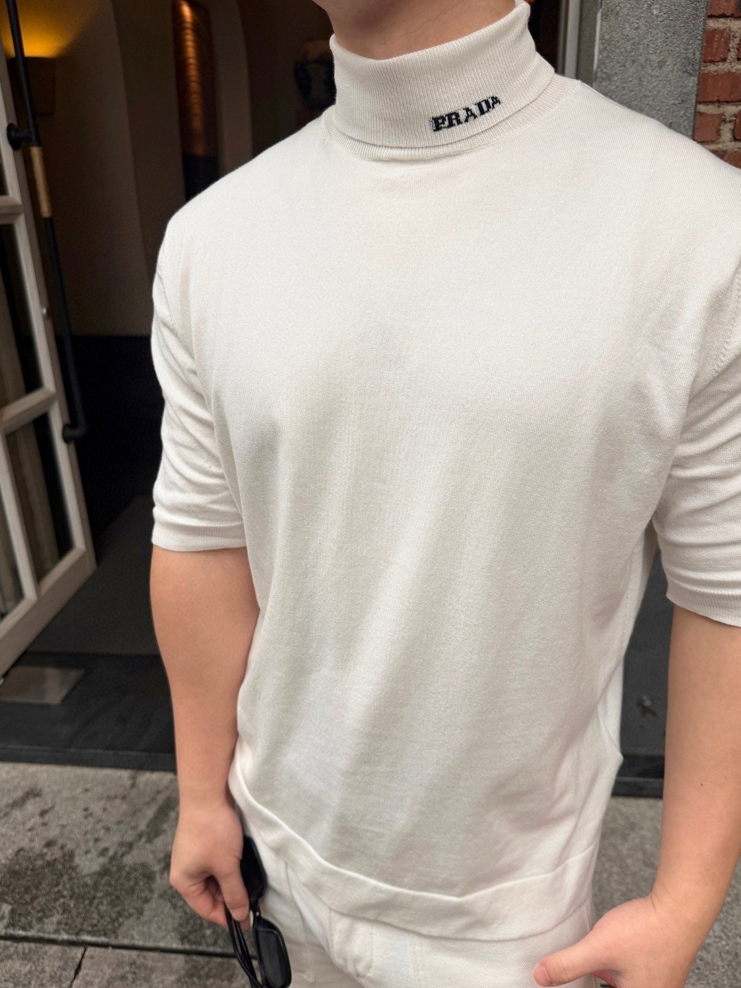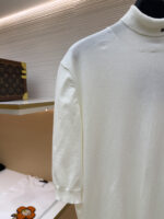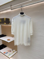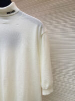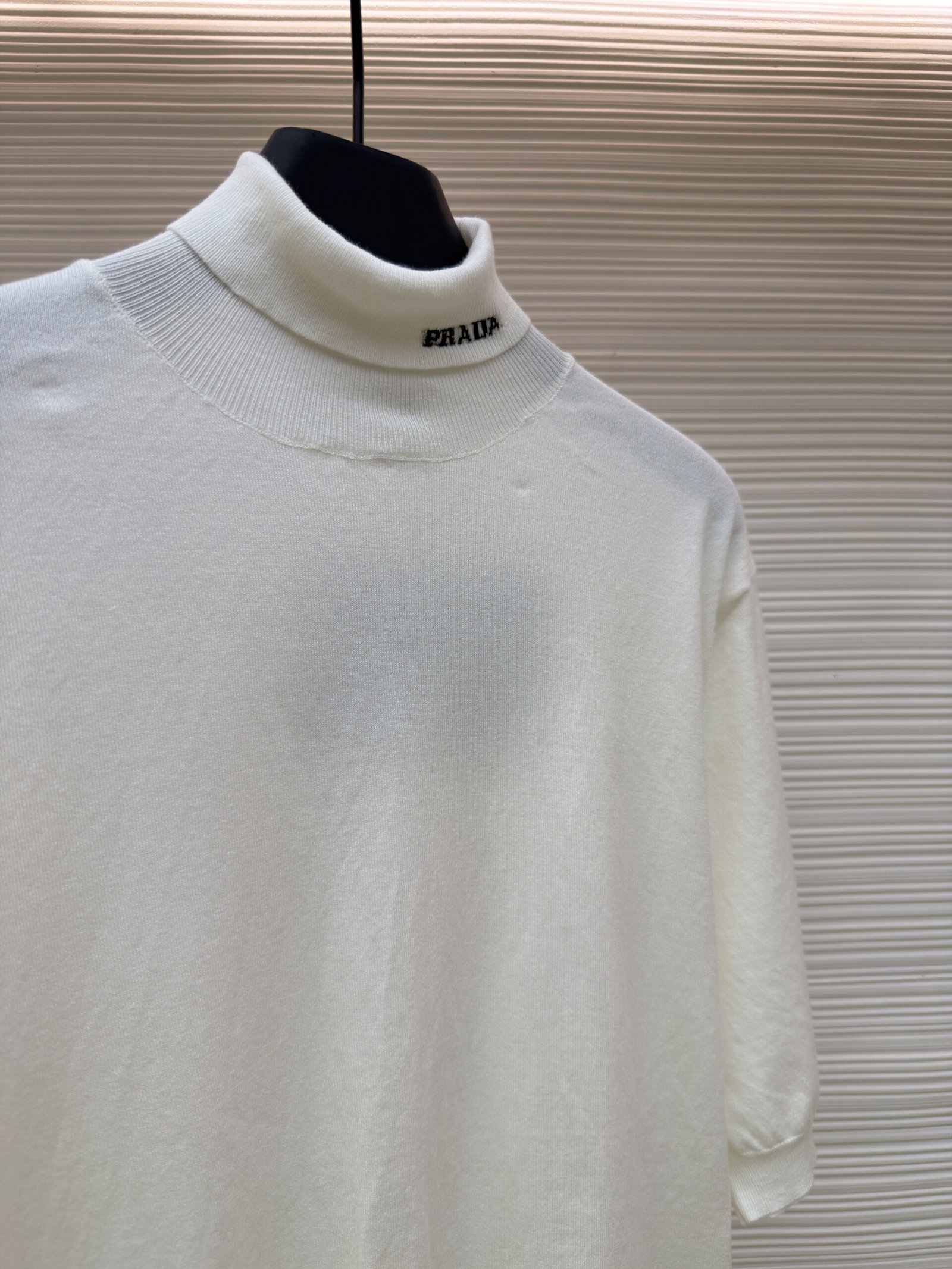 PRADA Embroidery Letter logo High Neck loose short-sleeved Sweater プラダ 刺繍 モジ logo ストライプ ハイネック ゆったり 半袖カジュアル ニットセーター