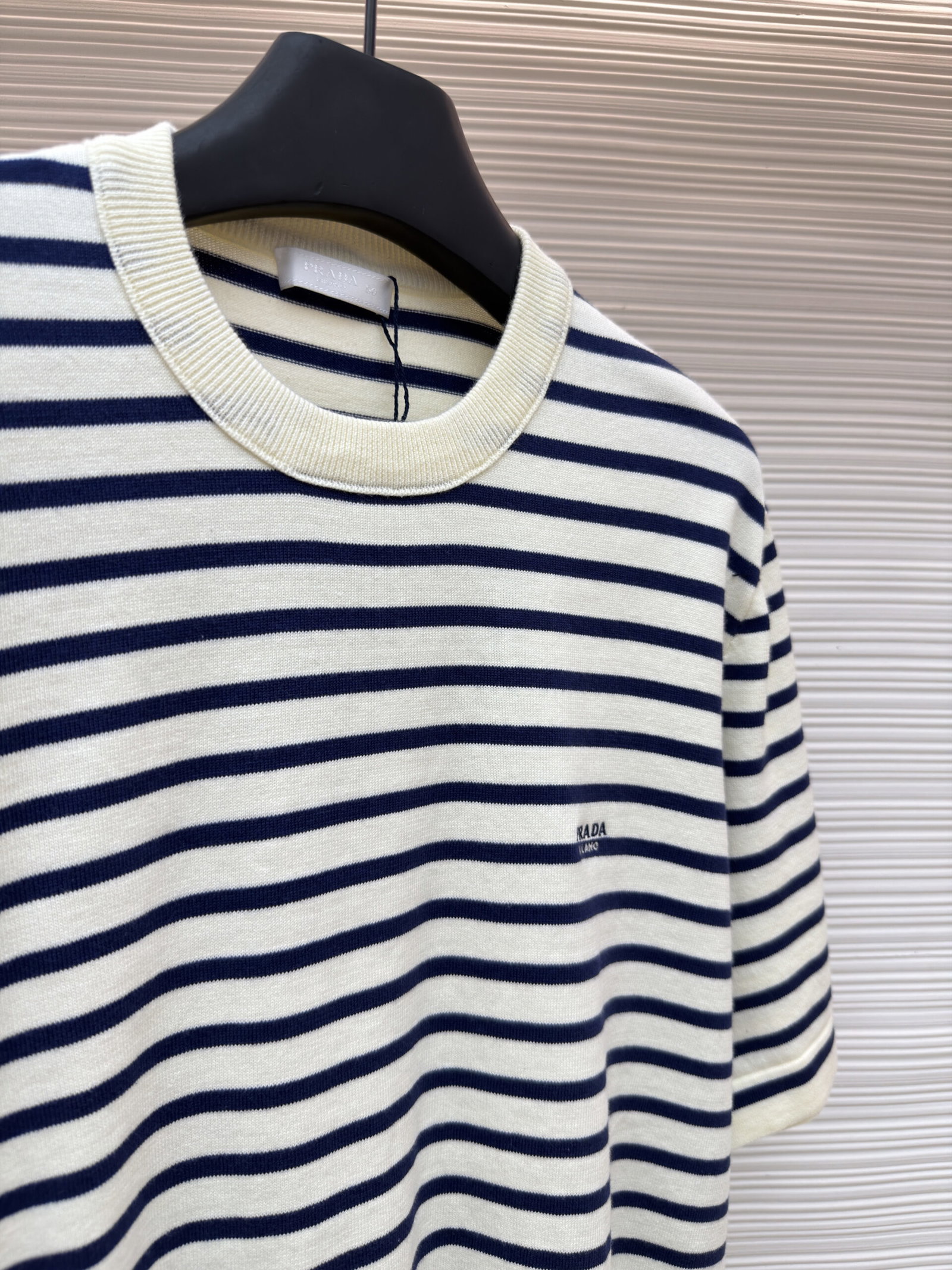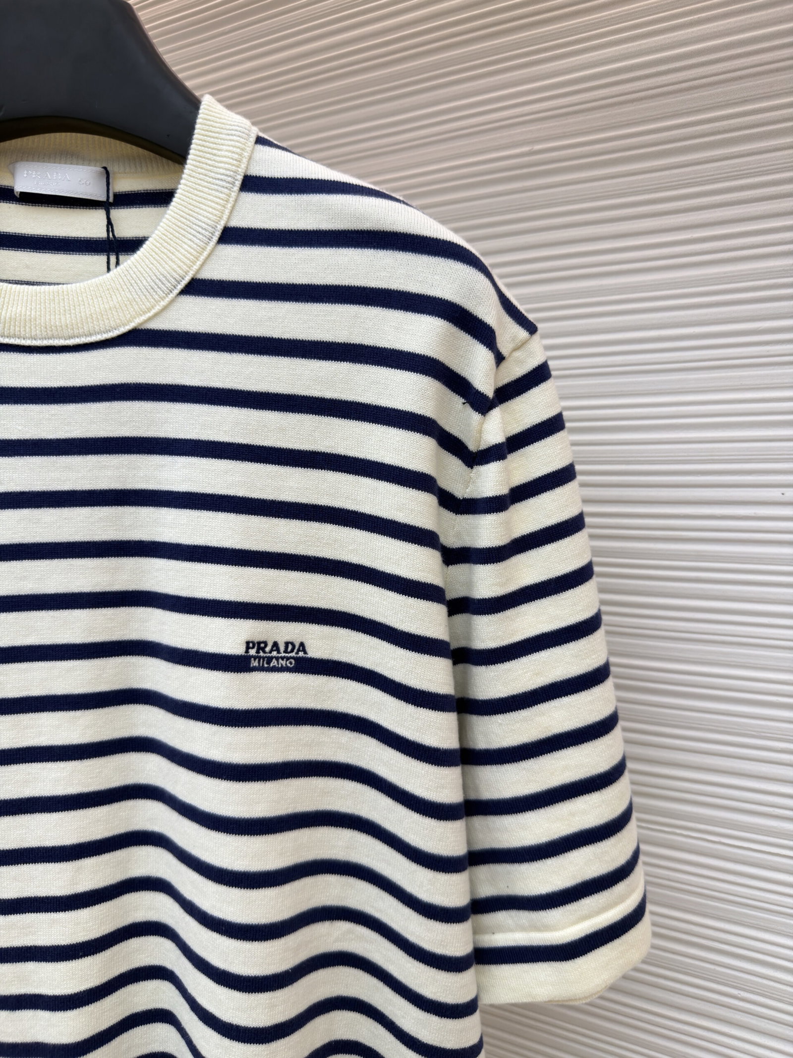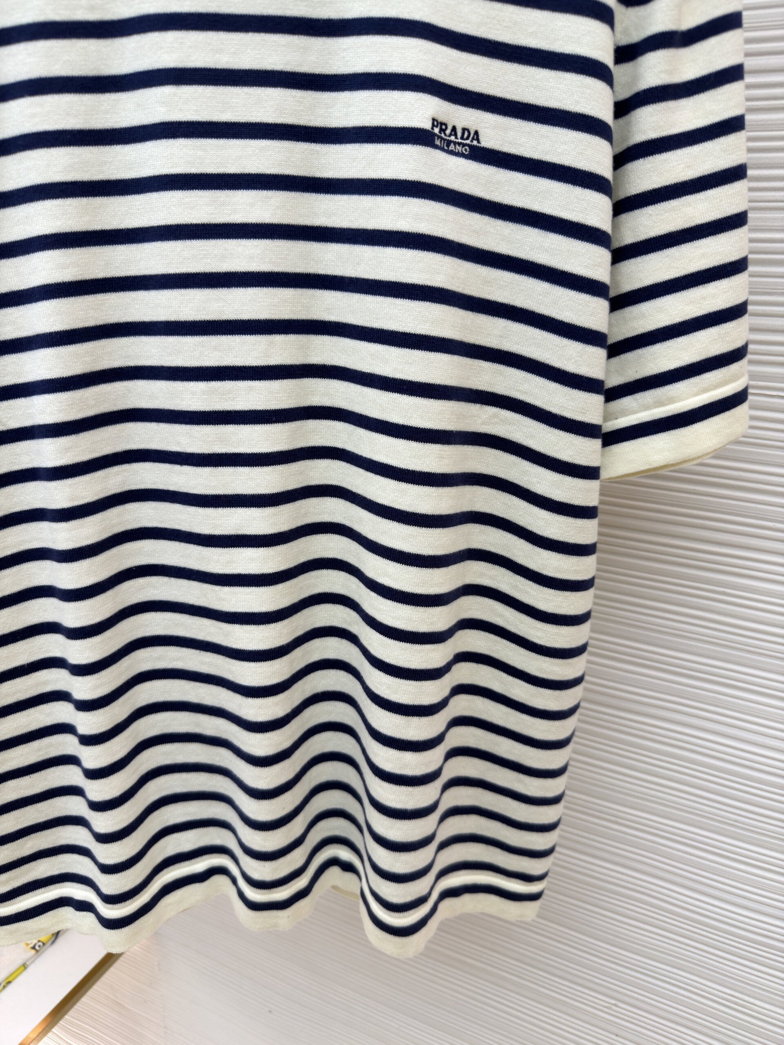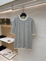 PRADA Embroidery Letter logo stripe Round neck loose T-shirt プラダ 刺繍 モジ logo ストライプ クルーネック ゆったり Tシャツ