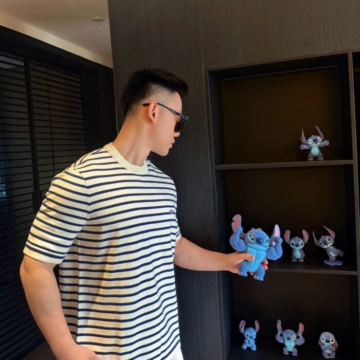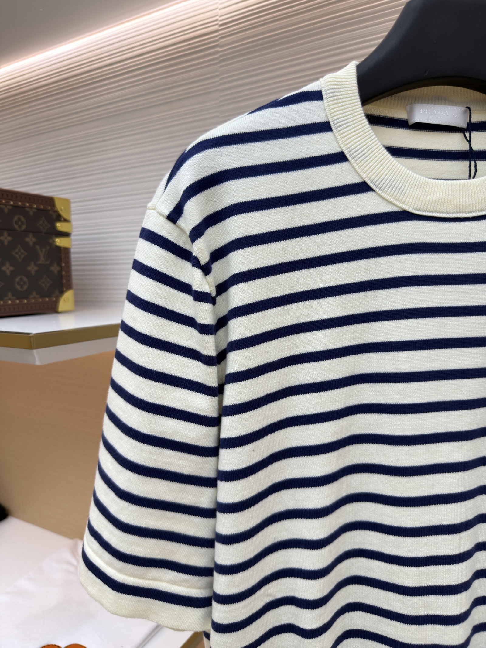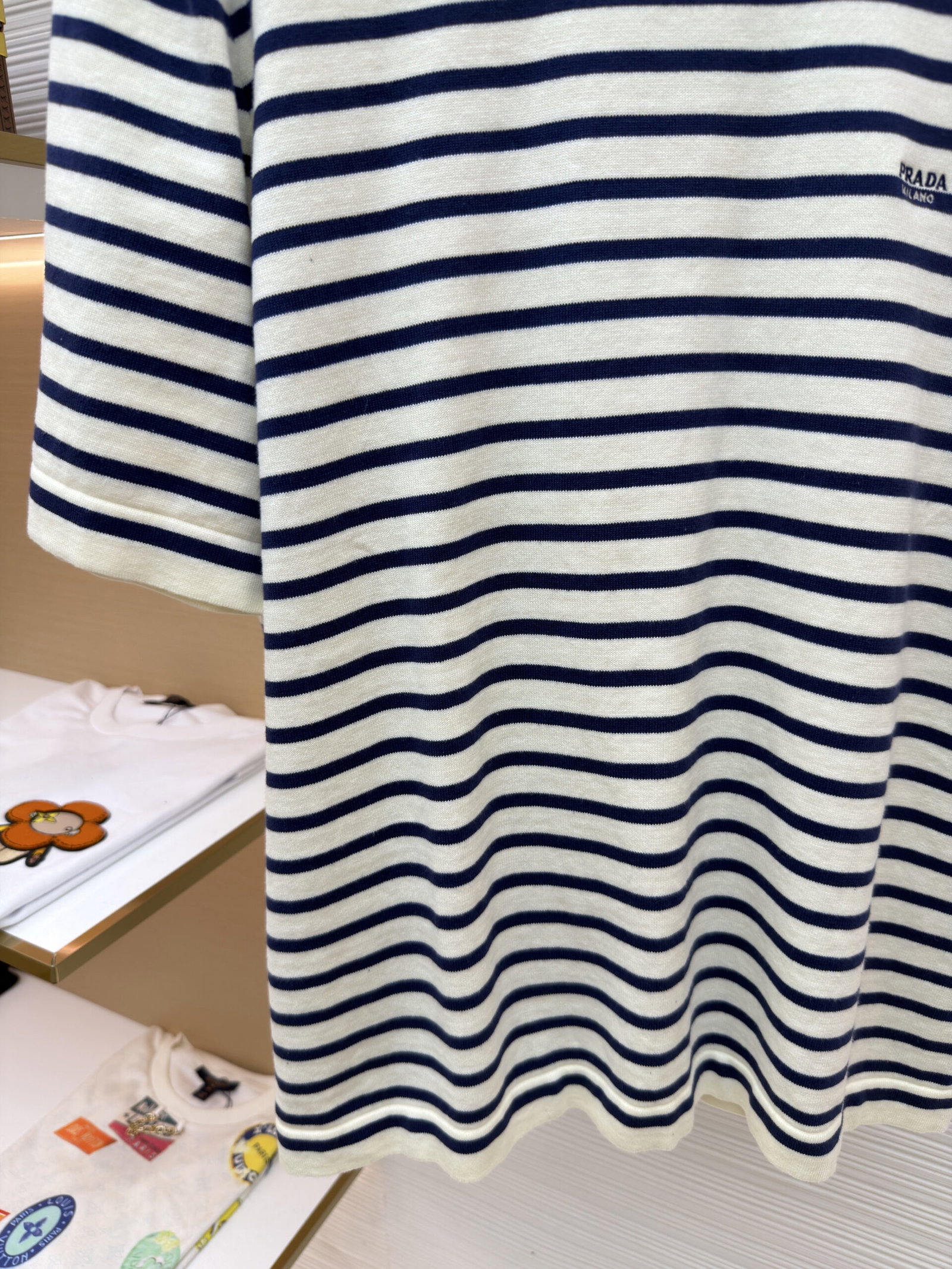 PRADA Embroidery Letter logo stripe Round neck loose T-shirt プラダ 刺繍 モジ logo ストライプ クルーネック ゆったり Tシャツ
