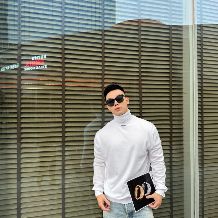 PRADA Embroidery LOGO High Neck Knit Sweater White プラダ 刺繍 LOGO ハイネック ニットセーター ホワイト