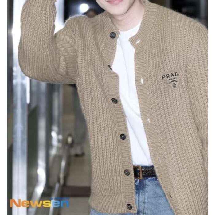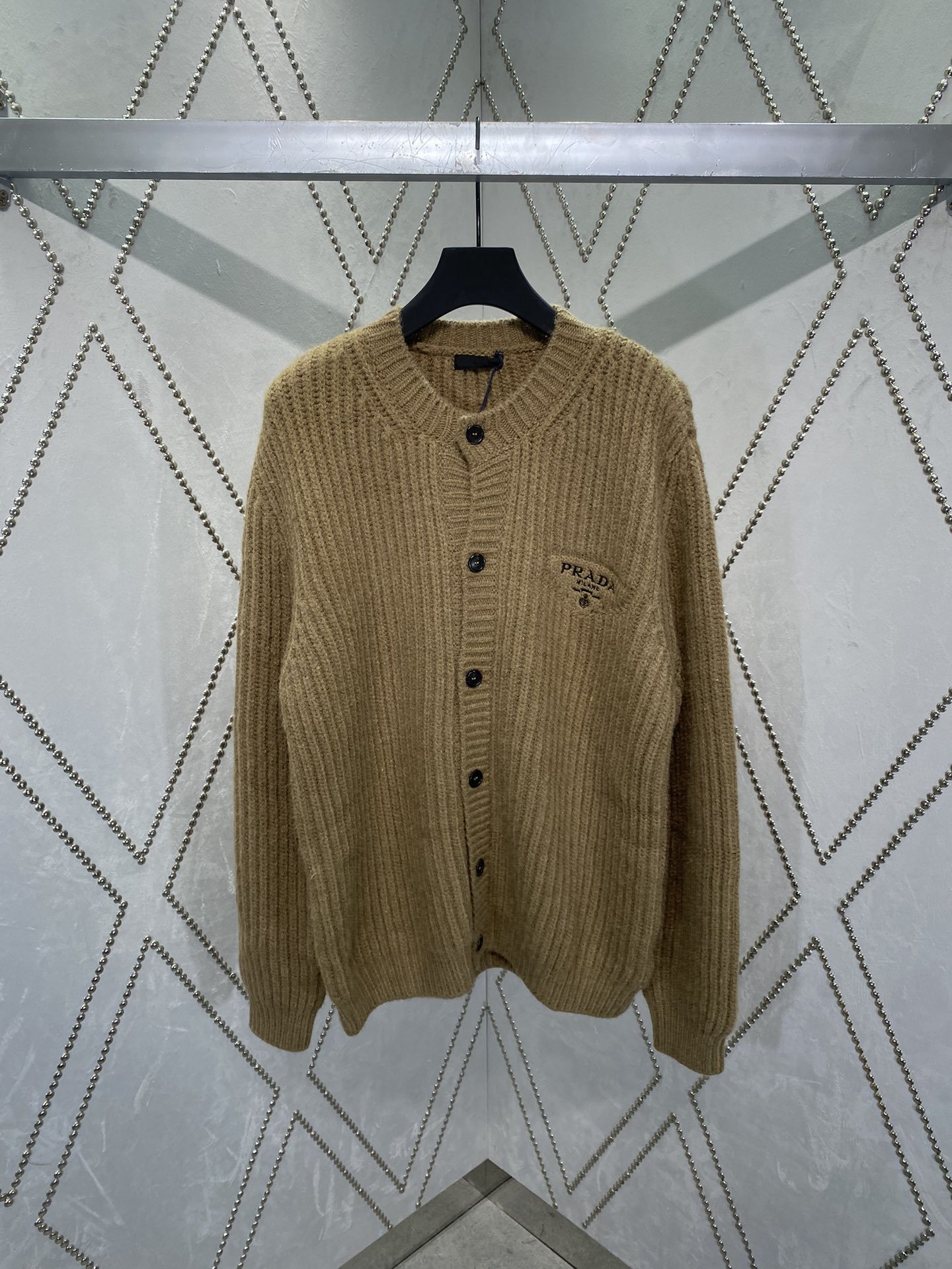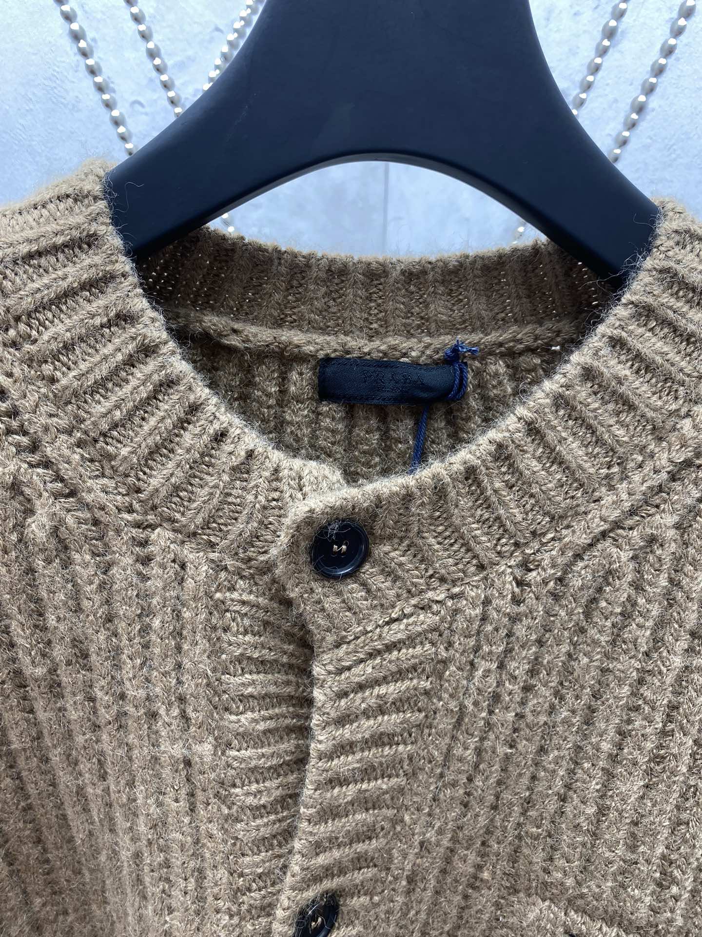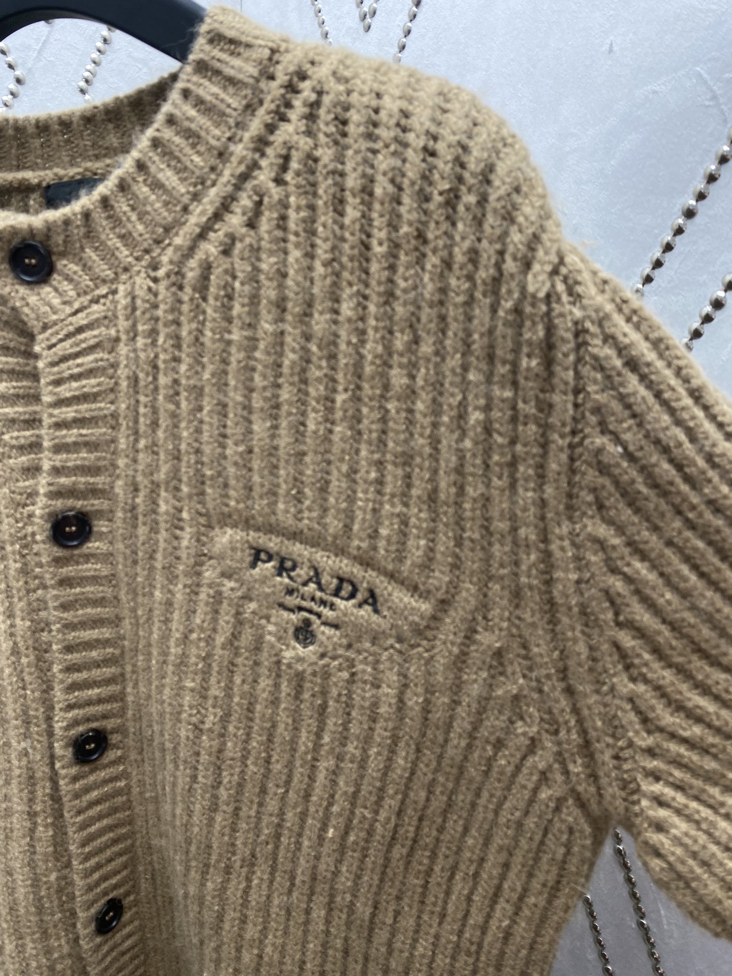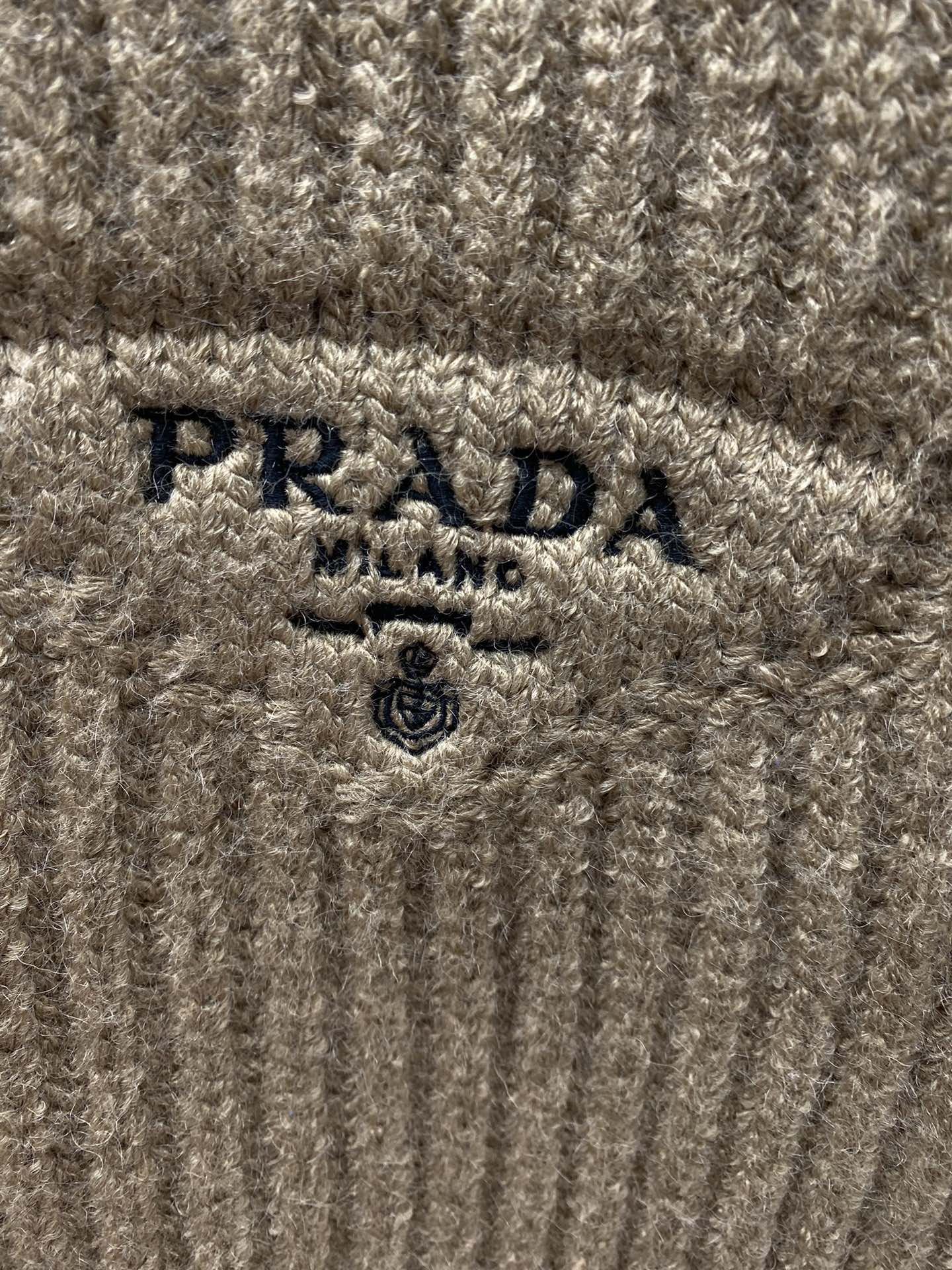 PRADA Embroidery LOGO knit Sweater Cardigan Brown プラダ 刺繍 LOGO ニットセーター カーディガン ブラウン