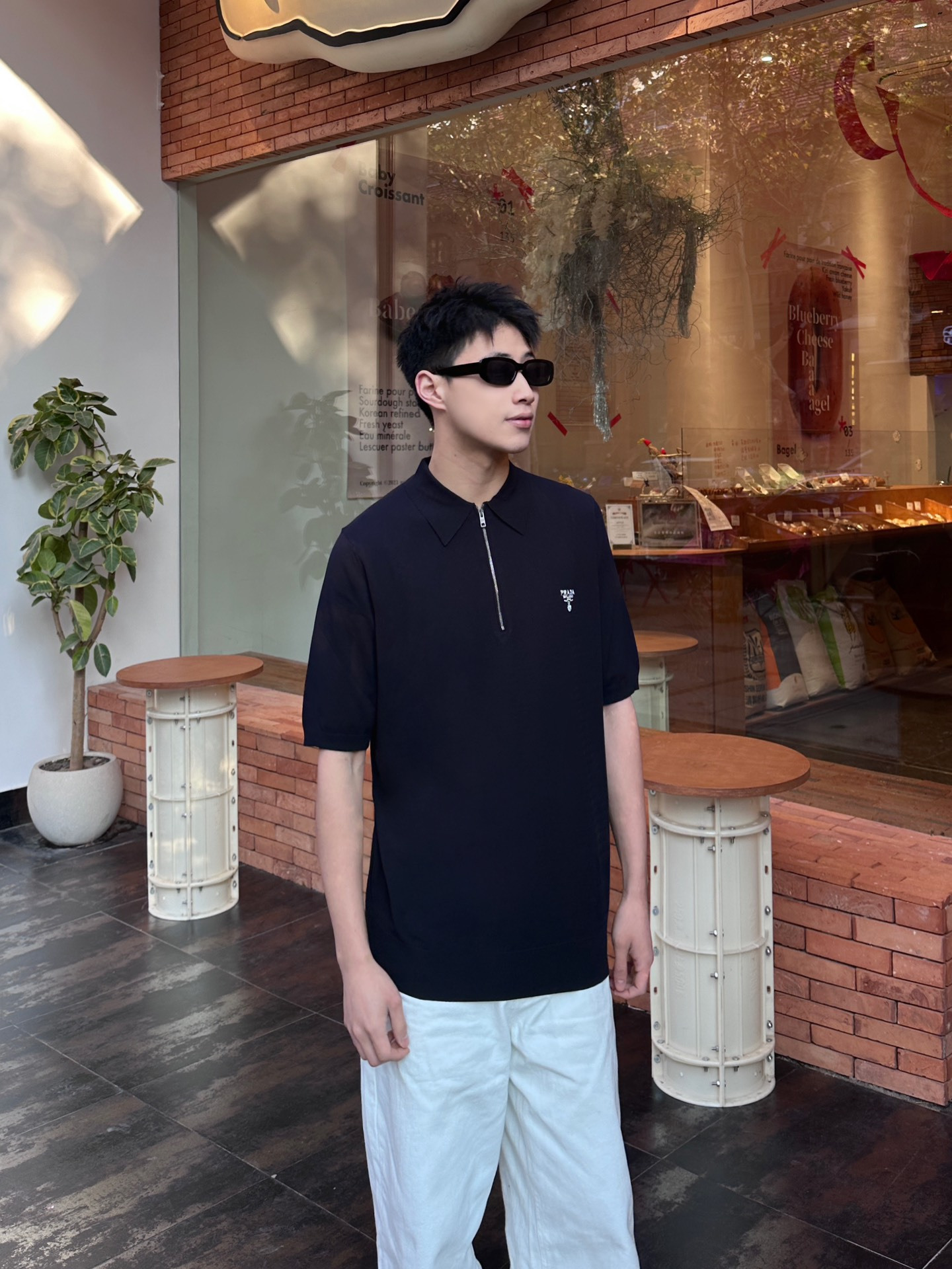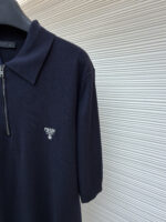 PRADA Embroidery Logo loose half-zip T-shirt Navy プラダ 刺繍 logo ゆったり ハーフジップ Tシャツ ネイビー
