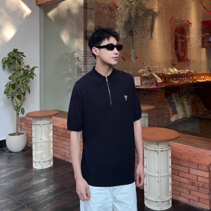 PRADA Embroidery Logo loose polo neck T-shirt Black プラダ 刺繍 Logo ゆったり polo ネック Tシャツ ブラック
