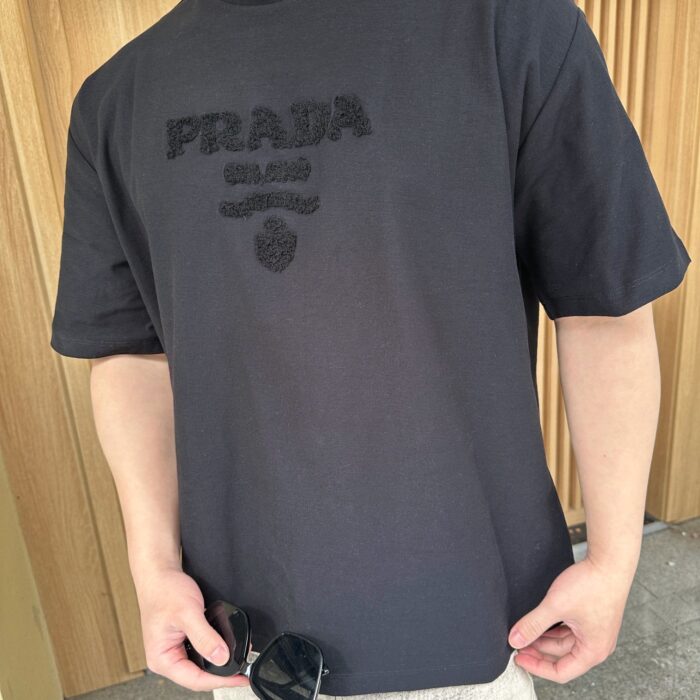 PRADA Embroidery logo loose Round neck T-shirt Black プラダ 刺繍 logo ゆったり クルーネック Tシャツ ブラック