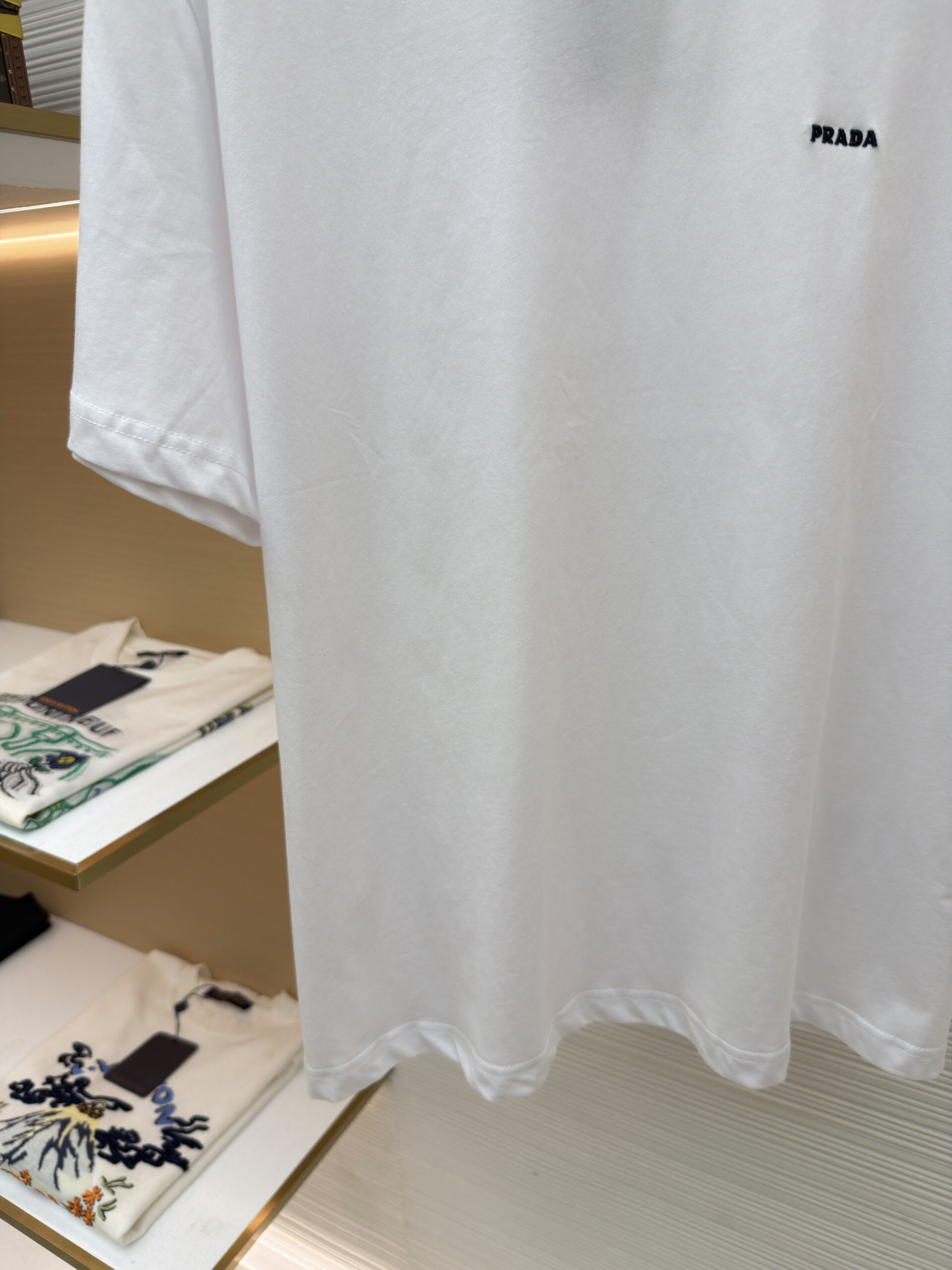 PRADA Embroidery Logo Round neck loose T-shirt White プラダ 刺繍 logo クルーネック ゆったり Tシャツ ホワイト