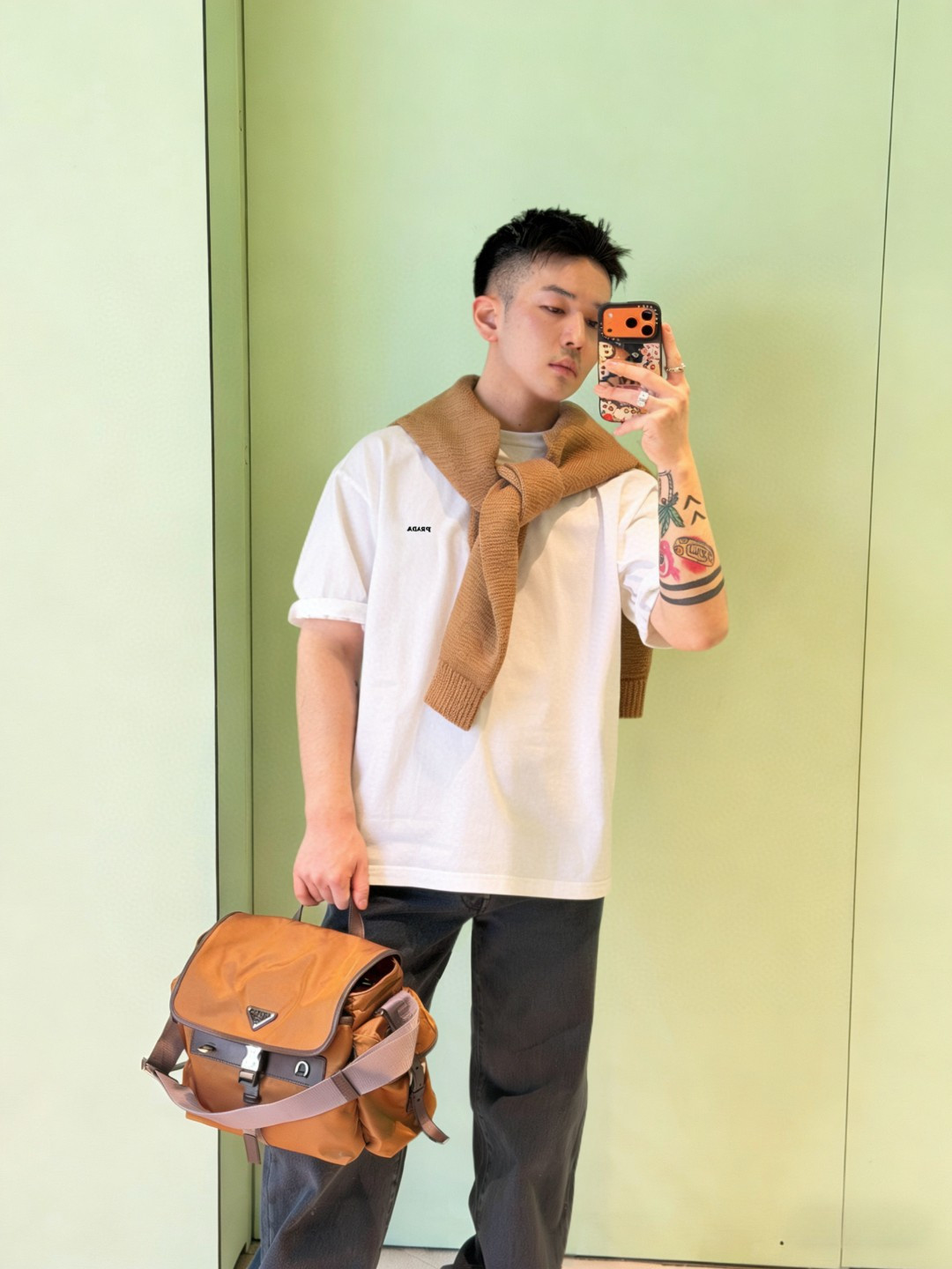 PRADA pocket Triangle Logo loose Round neck T-shirt White プラダ ポケット 三角ロゴ ゆったり クルーネック Tシャツ ホワイト