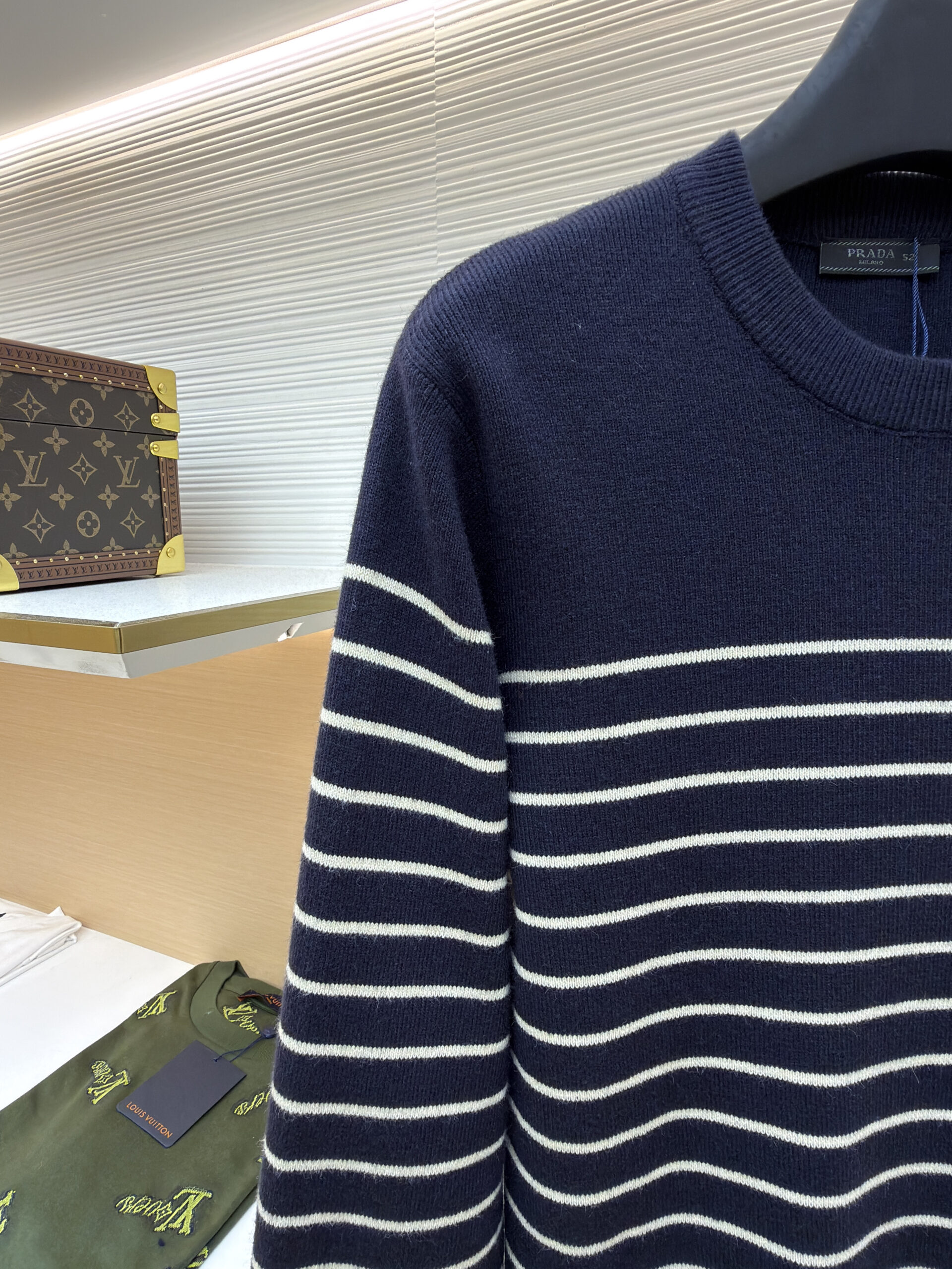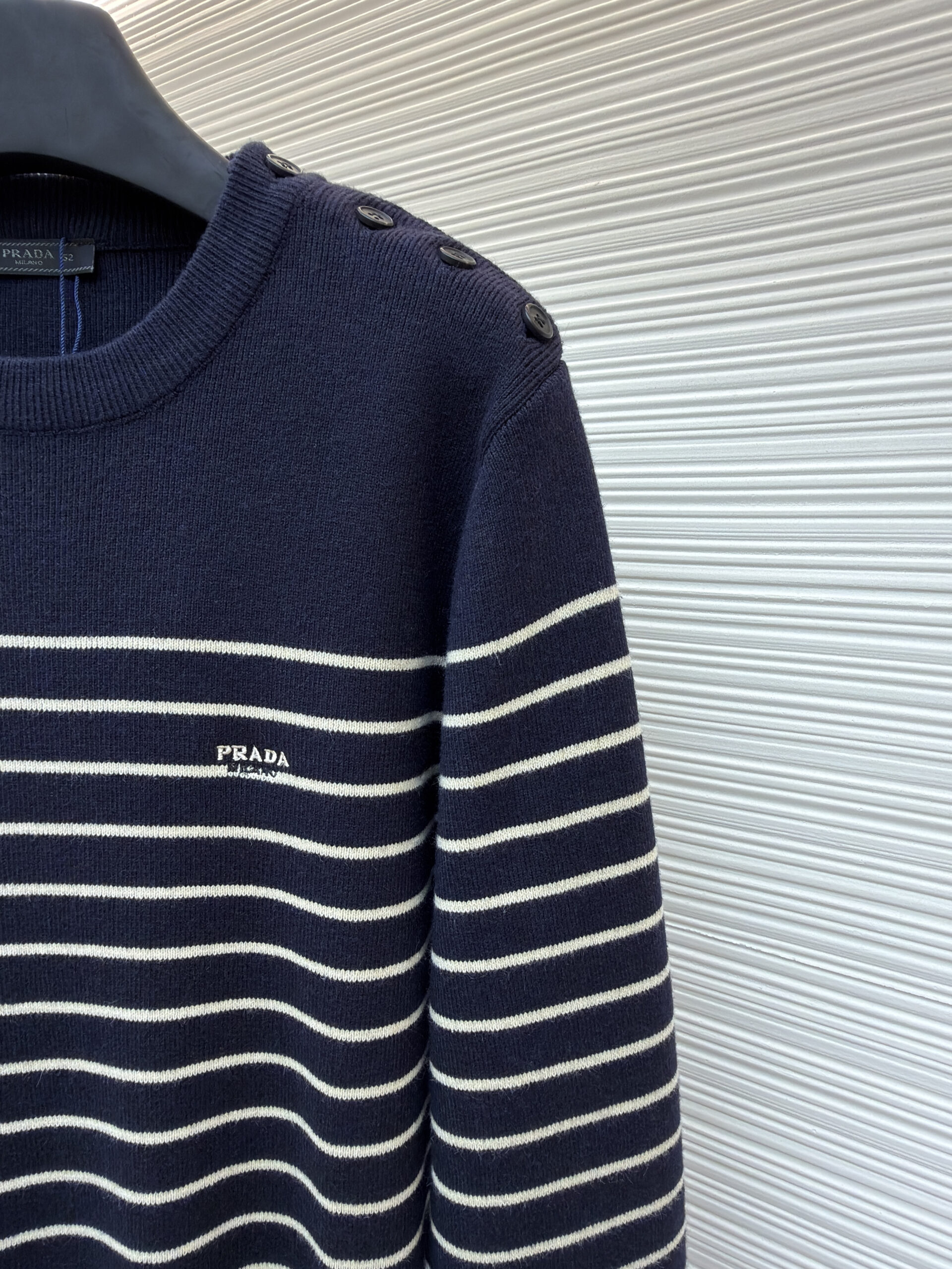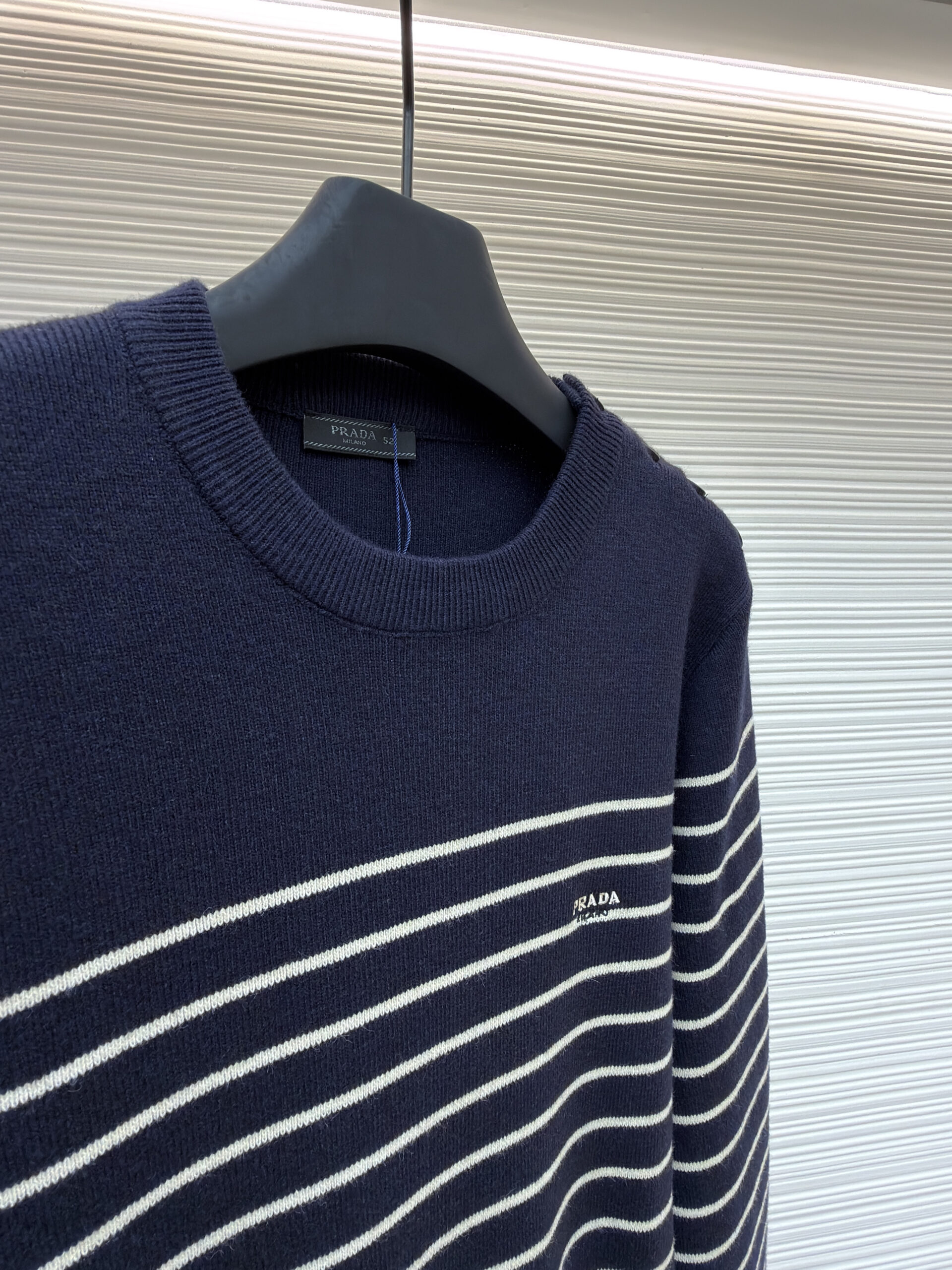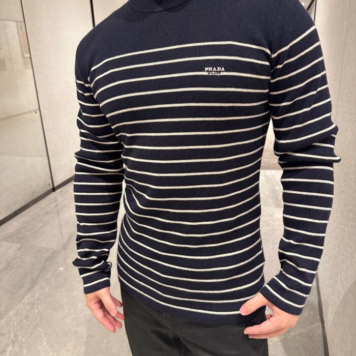PRADA Embroidery LOGO stripe Round neck Knit Sweater プラダ 刺繍 LOGO ストライプ クルーネック ニットセーター