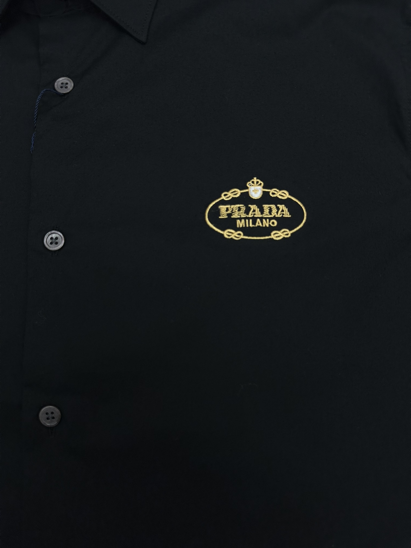 Prada Embroidery LOGO Turn-Down Collar Single-Breasted Shirt Black プラダ 刺繍 LOGO ターンダウンカラー シングルブレスト シャツ ブラック