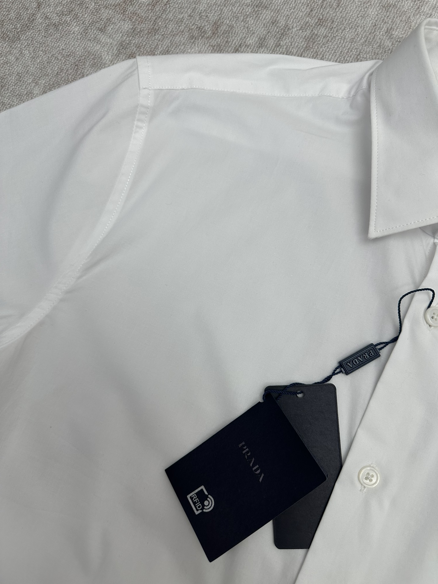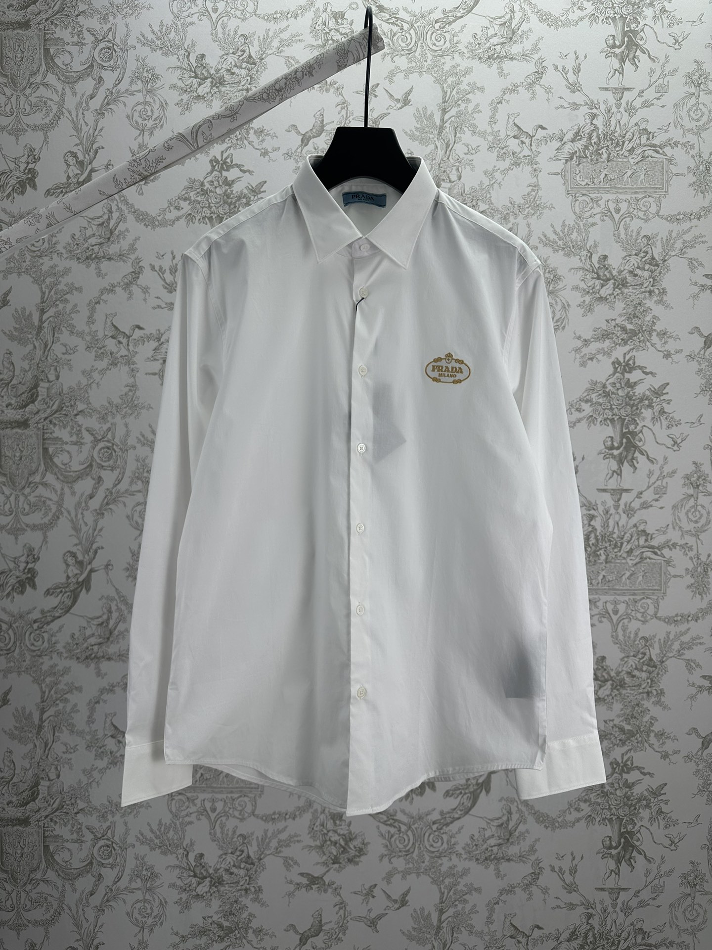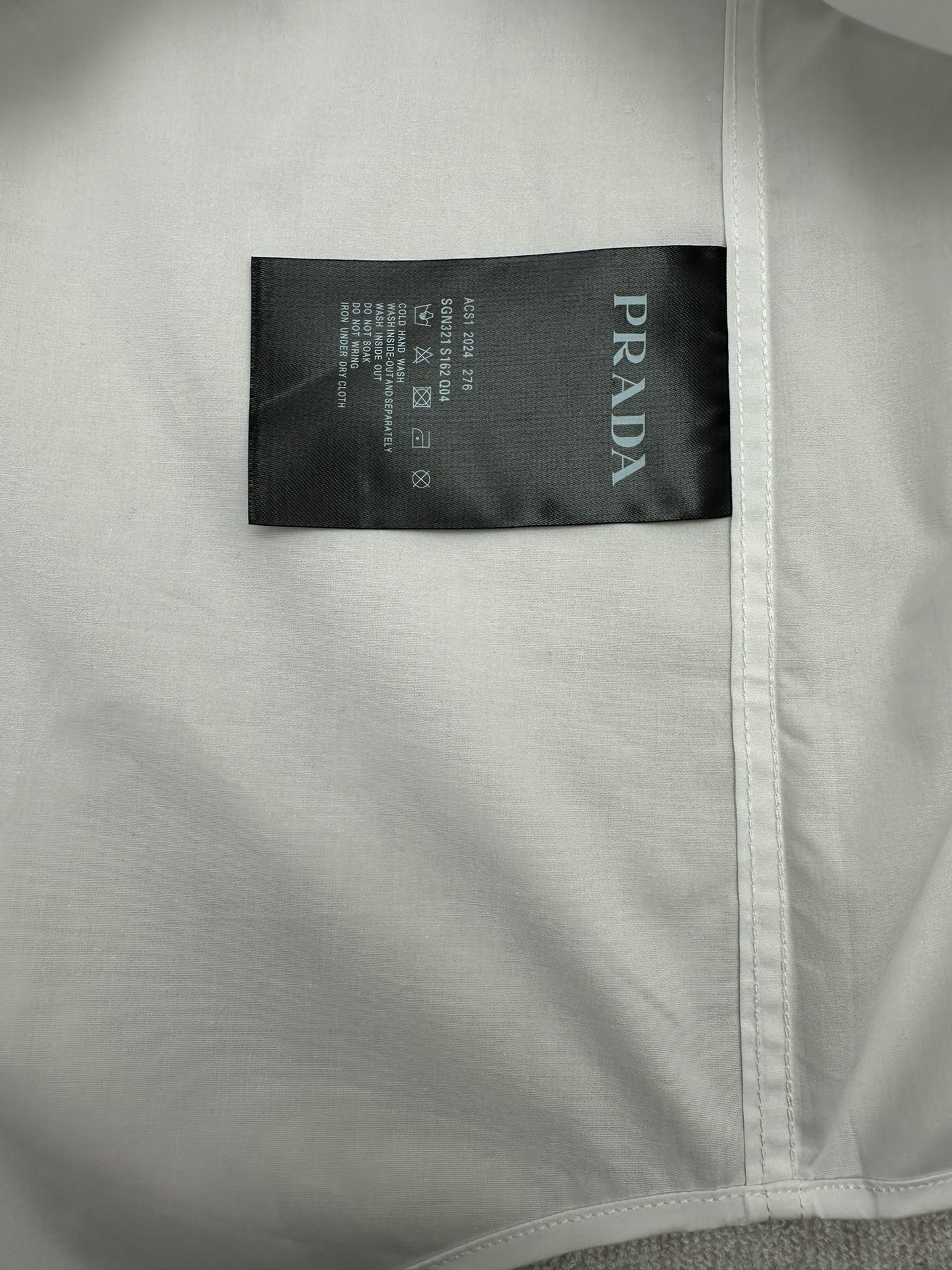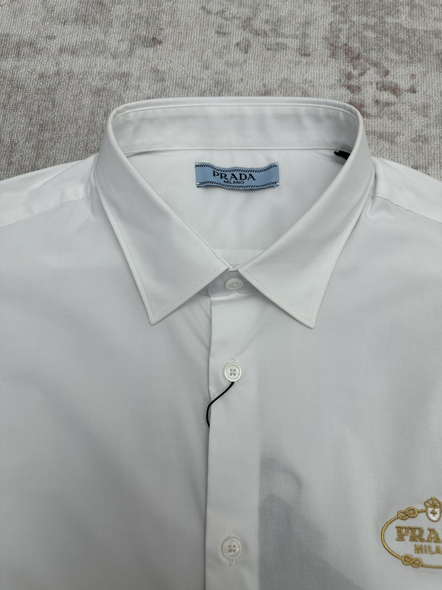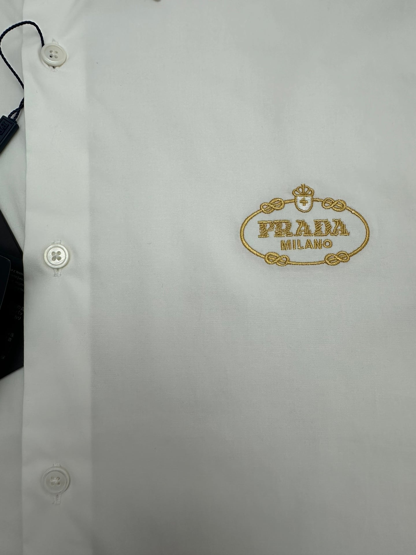 Prada Embroidery LOGO Turn-Down Collar Single-Breasted Shirt White プラダ 刺繍 LOGO ターンダウンカラー シングルブレスト シャツ ホワイト
