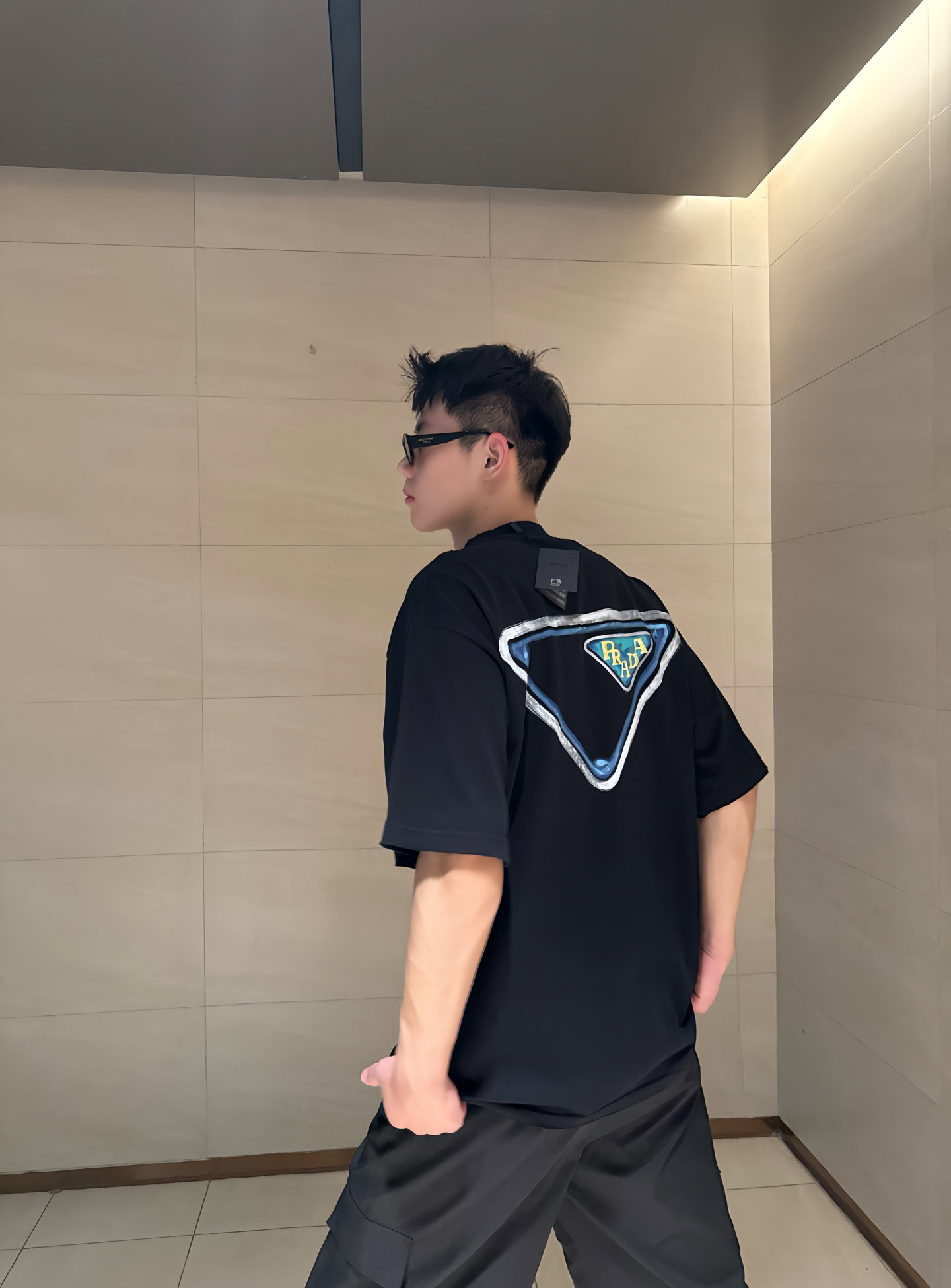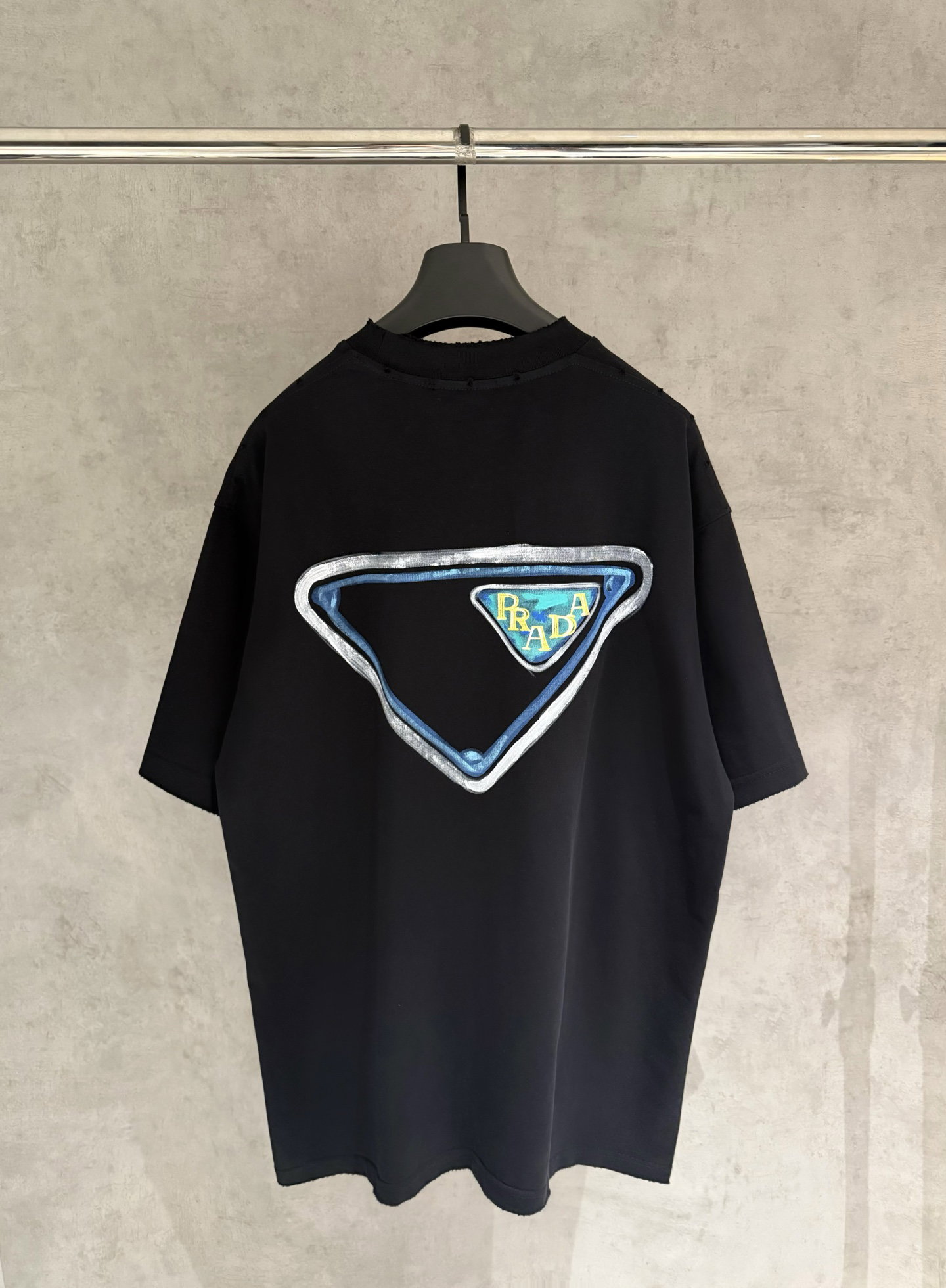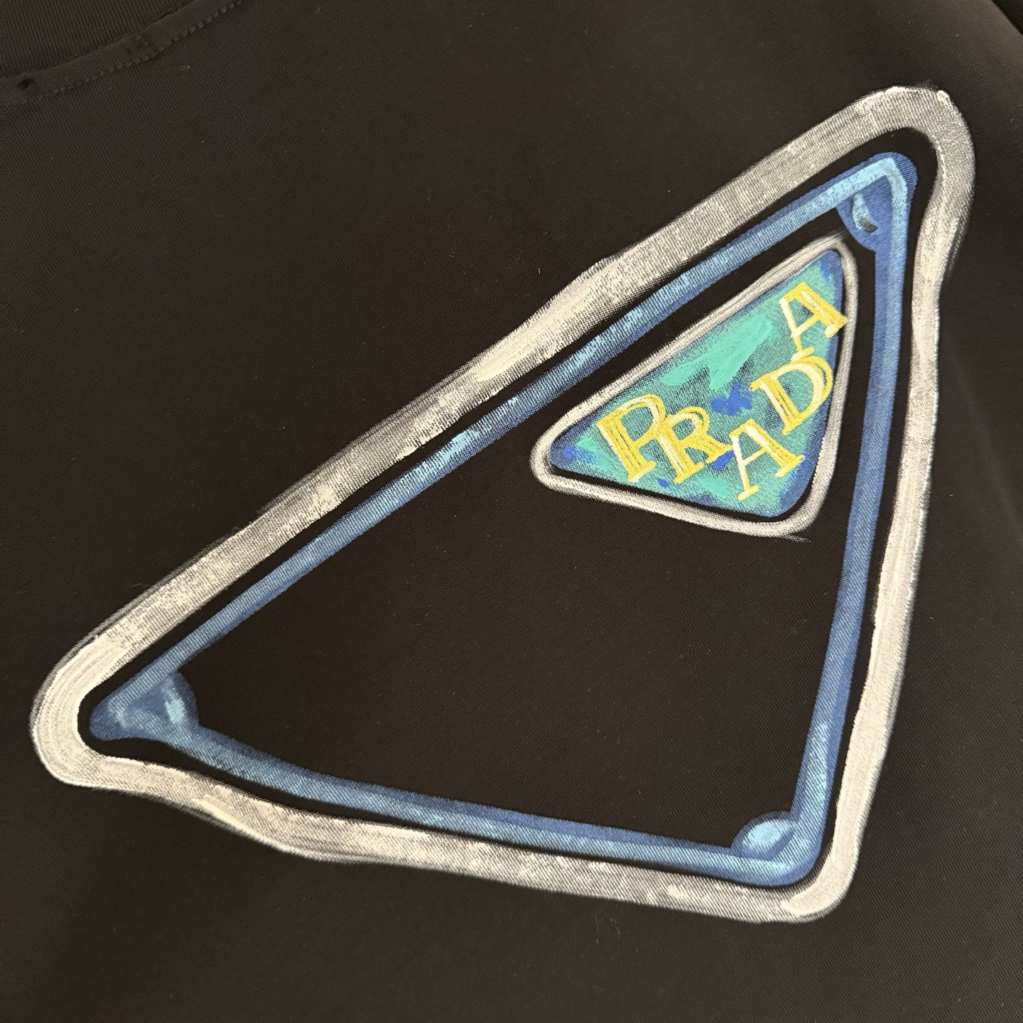 PRADA hand-drawn pattern Round neck loose T-shirt Black プラダ アップリケ 手描き パターン クルーネック ゆったり Tシャツ ブラック