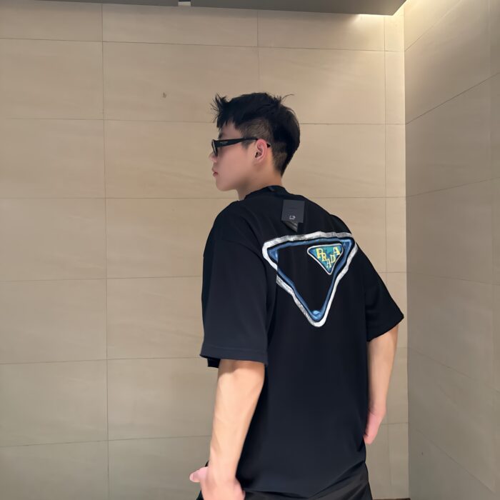 PRADA Embroidery Logo Round neck loose T-shirt Black プラダ 刺繍 logo クルーネック ゆったり Tシャツ ブラック