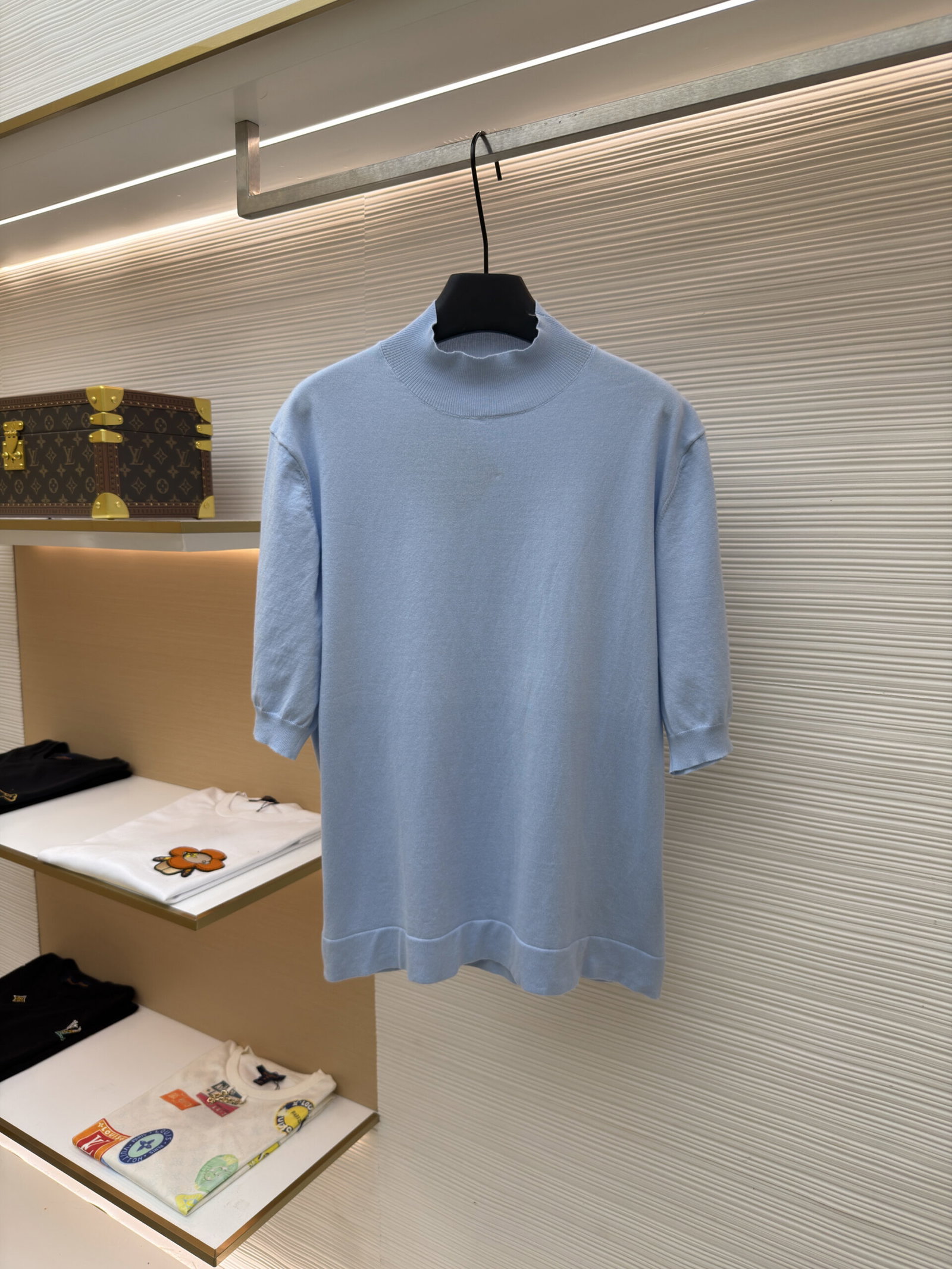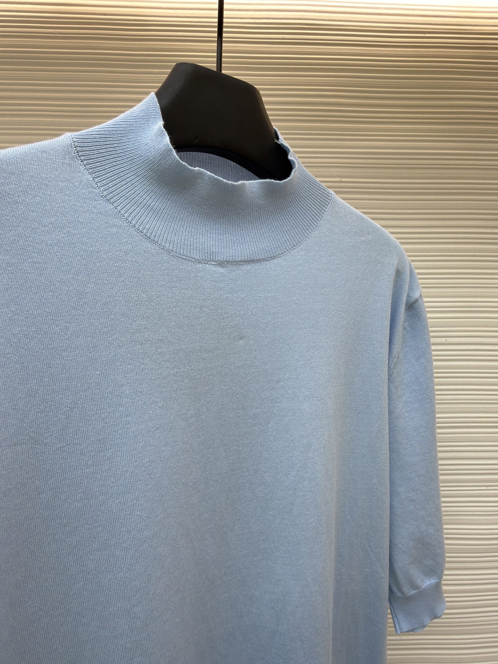PRADA High Neck loose short-sleeved Sweater Blue プラダ ハイネック ゆったり 半袖カジュアル ニットセーター ブルー