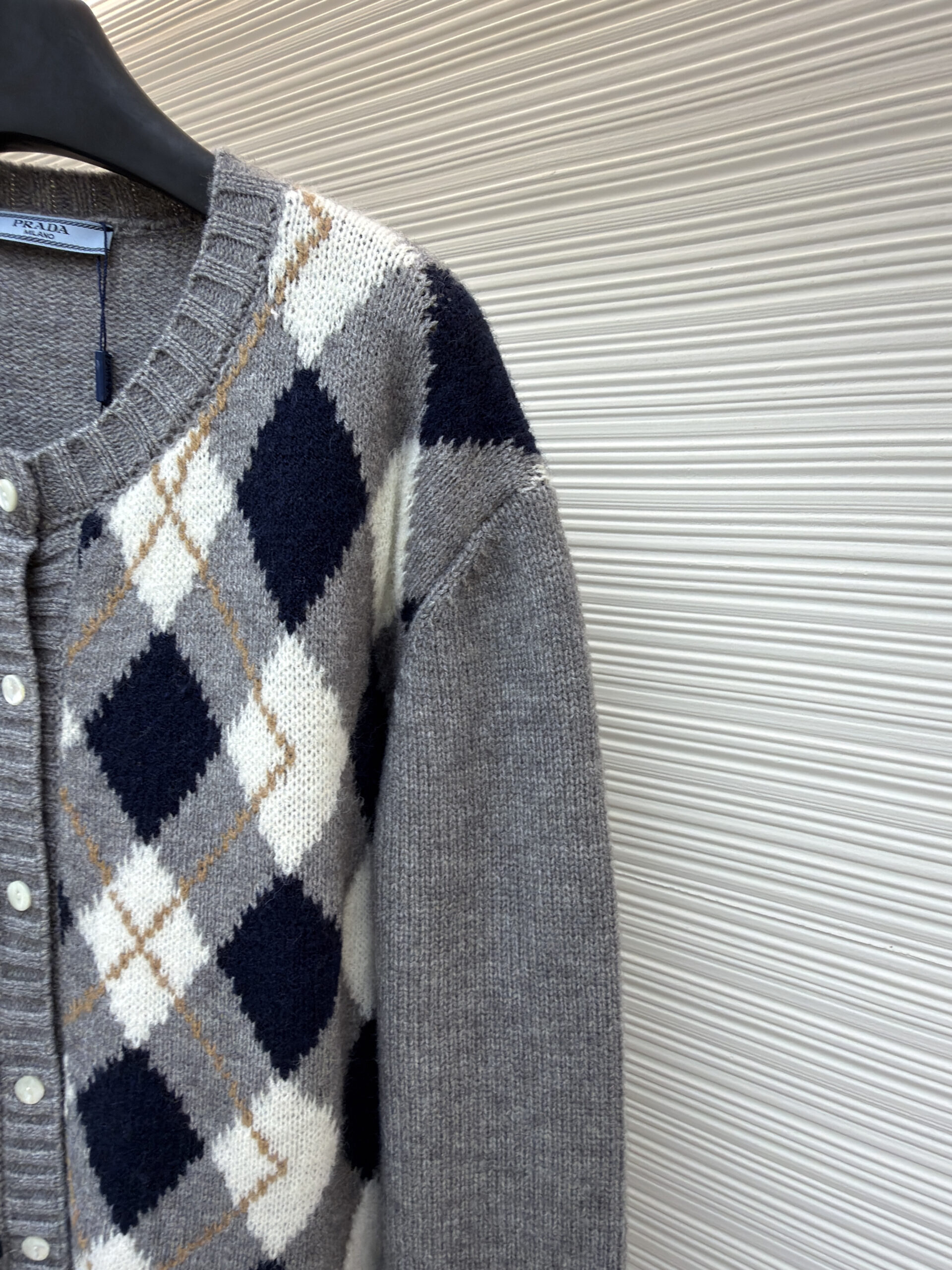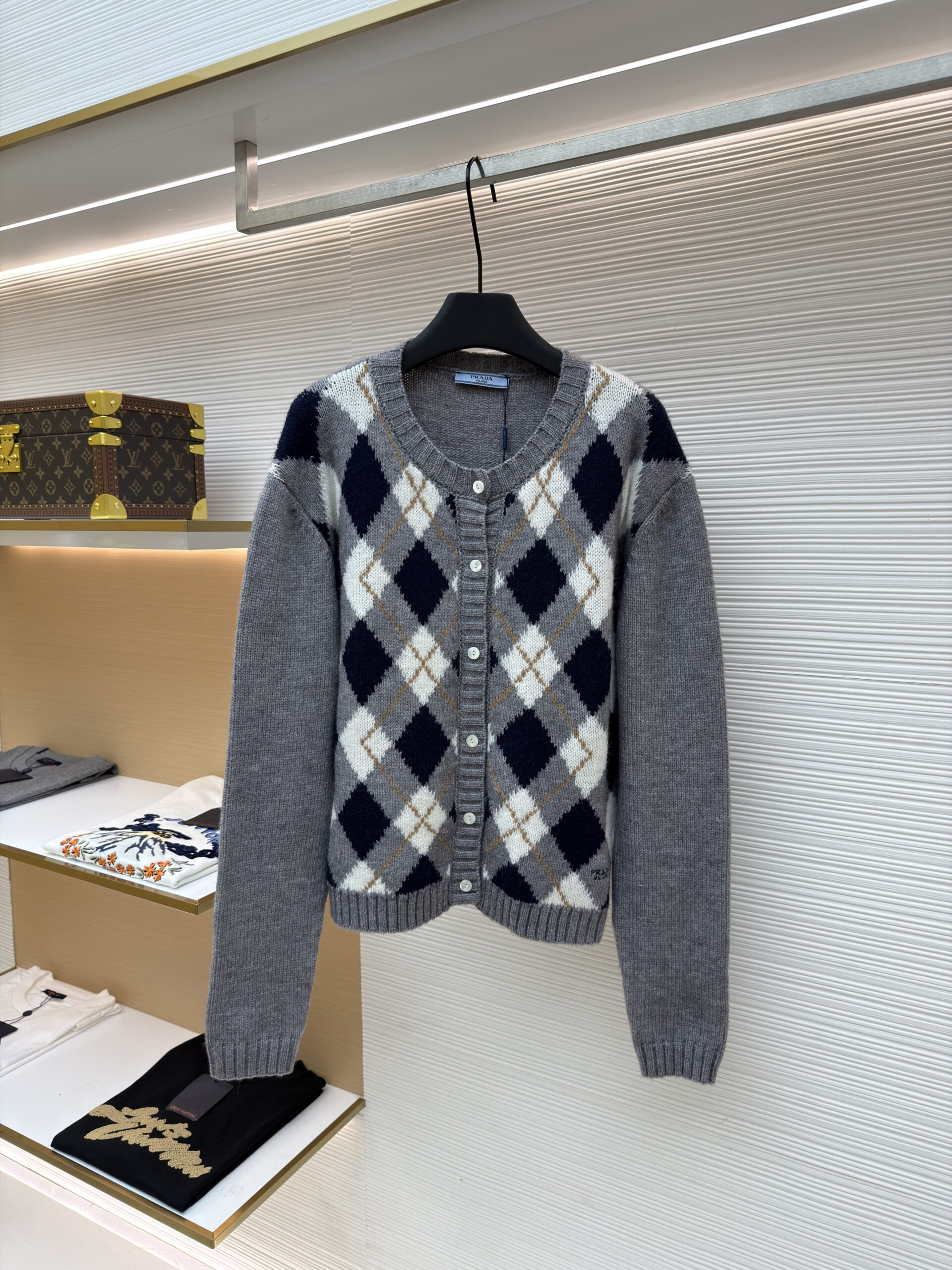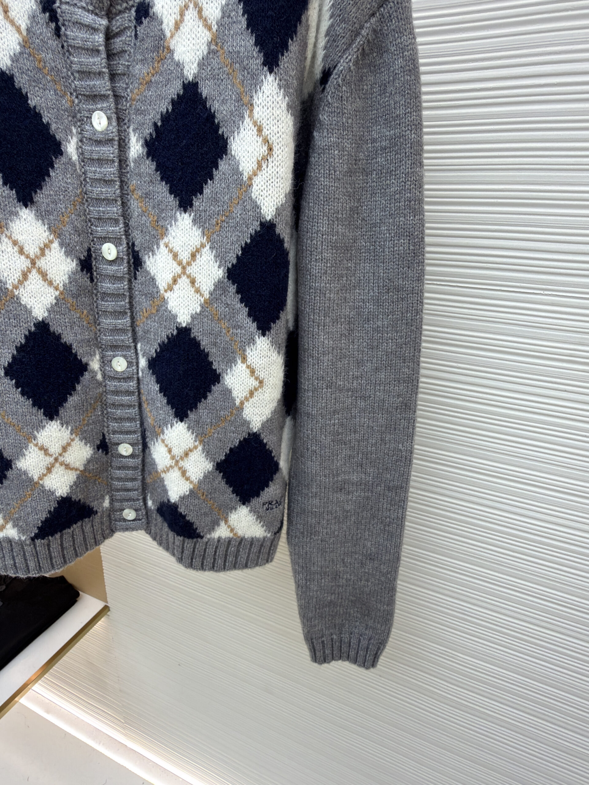 PRADA Knit Embroidery Diamond Pattern Sweater Cardigan プラダ ニット 刺繍 菱柄 ニットセーター カーディガン