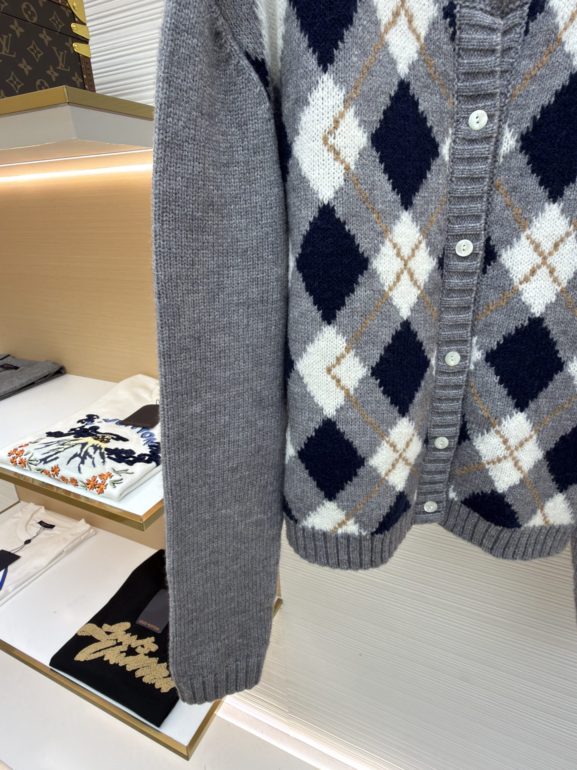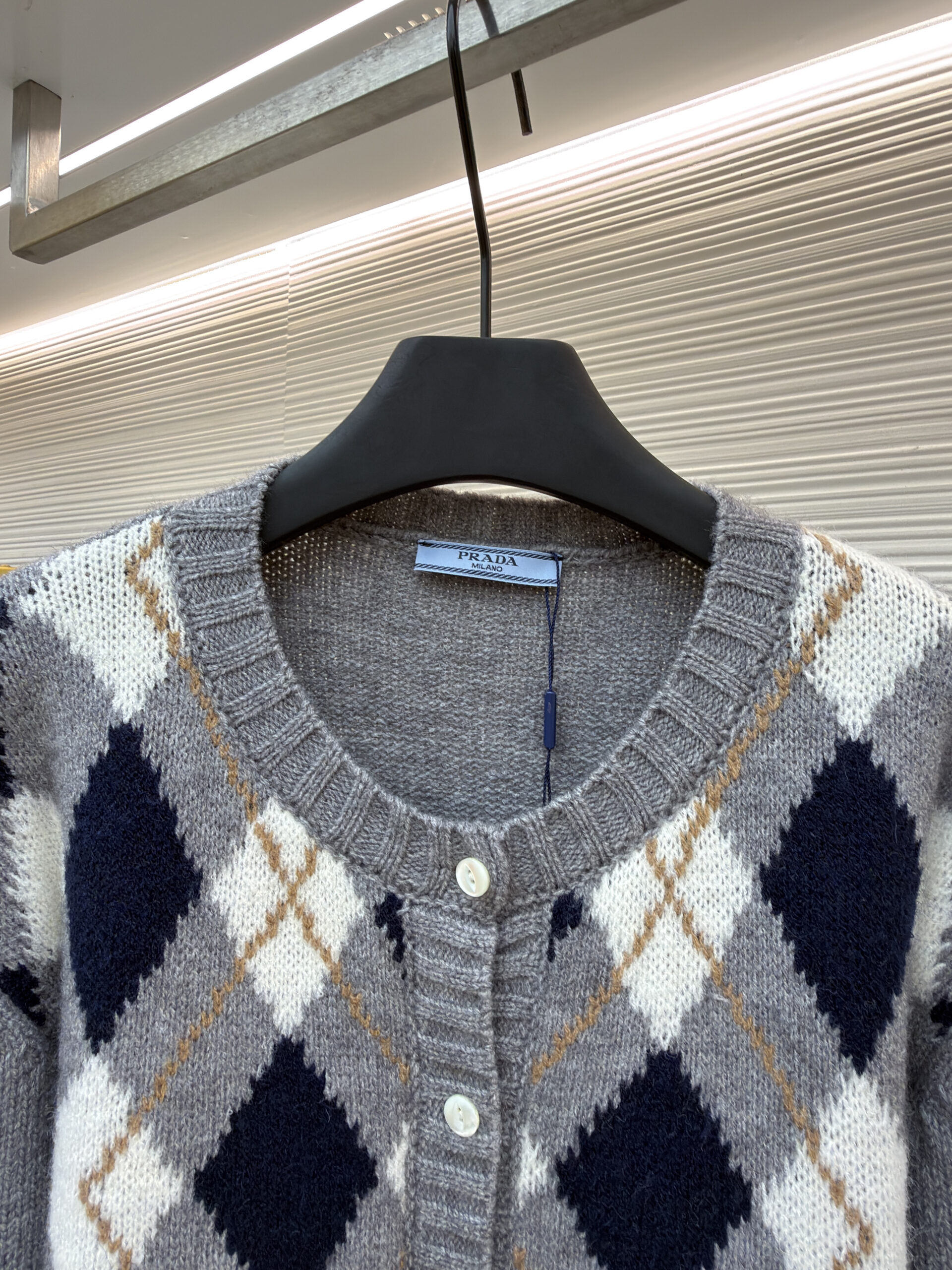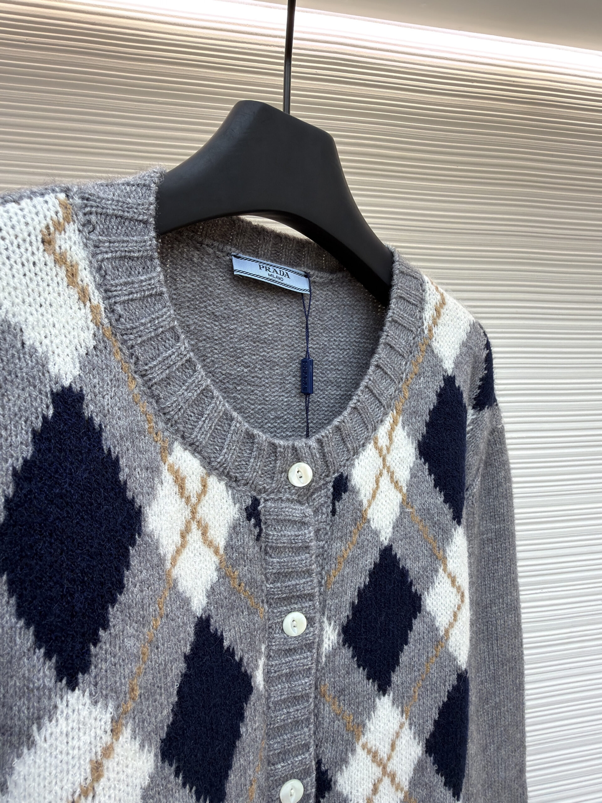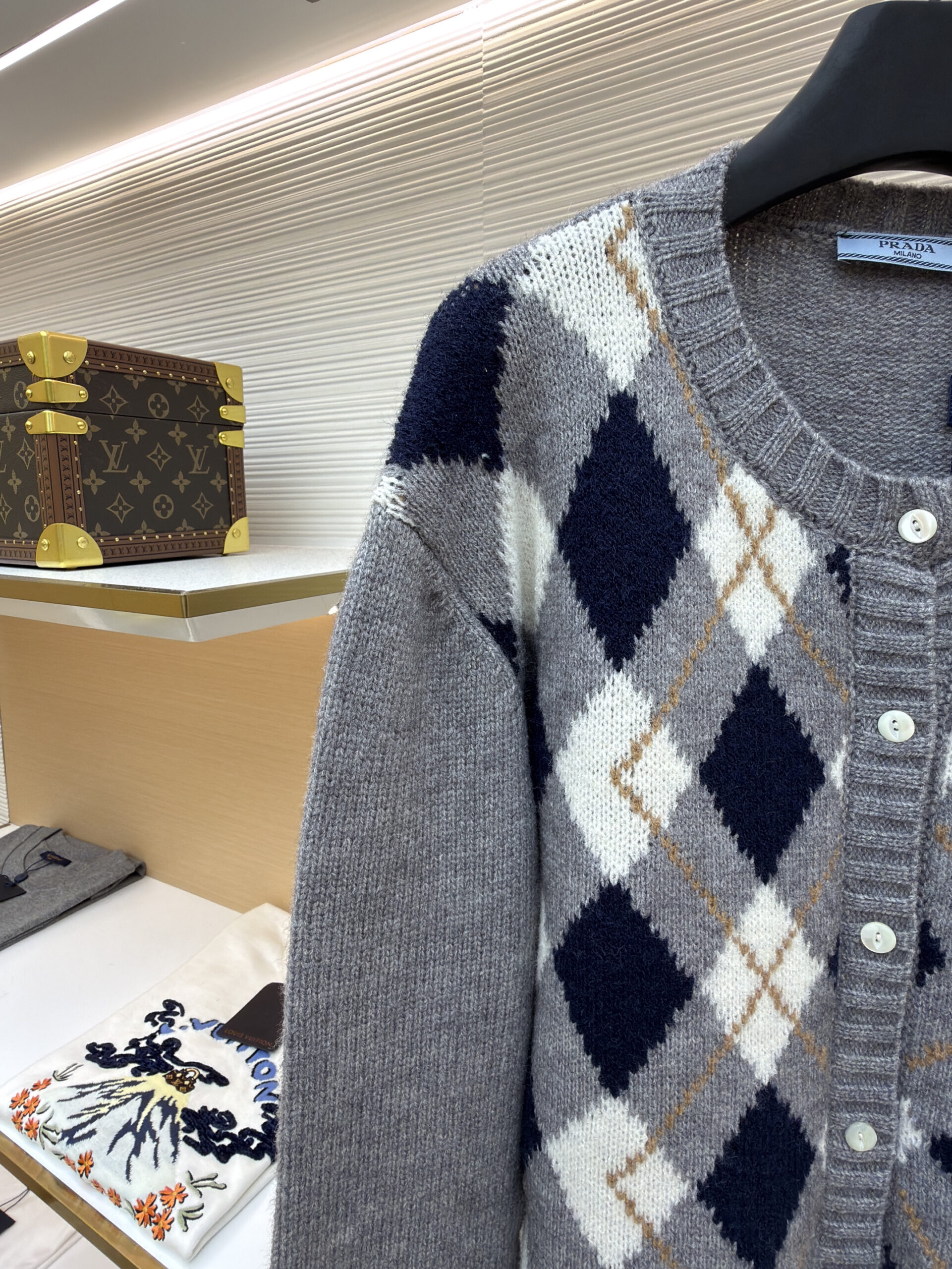 PRADA Knit Embroidery Diamond Pattern Sweater Cardigan プラダ ニット 刺繍 菱柄 ニットセーター カーディガン
