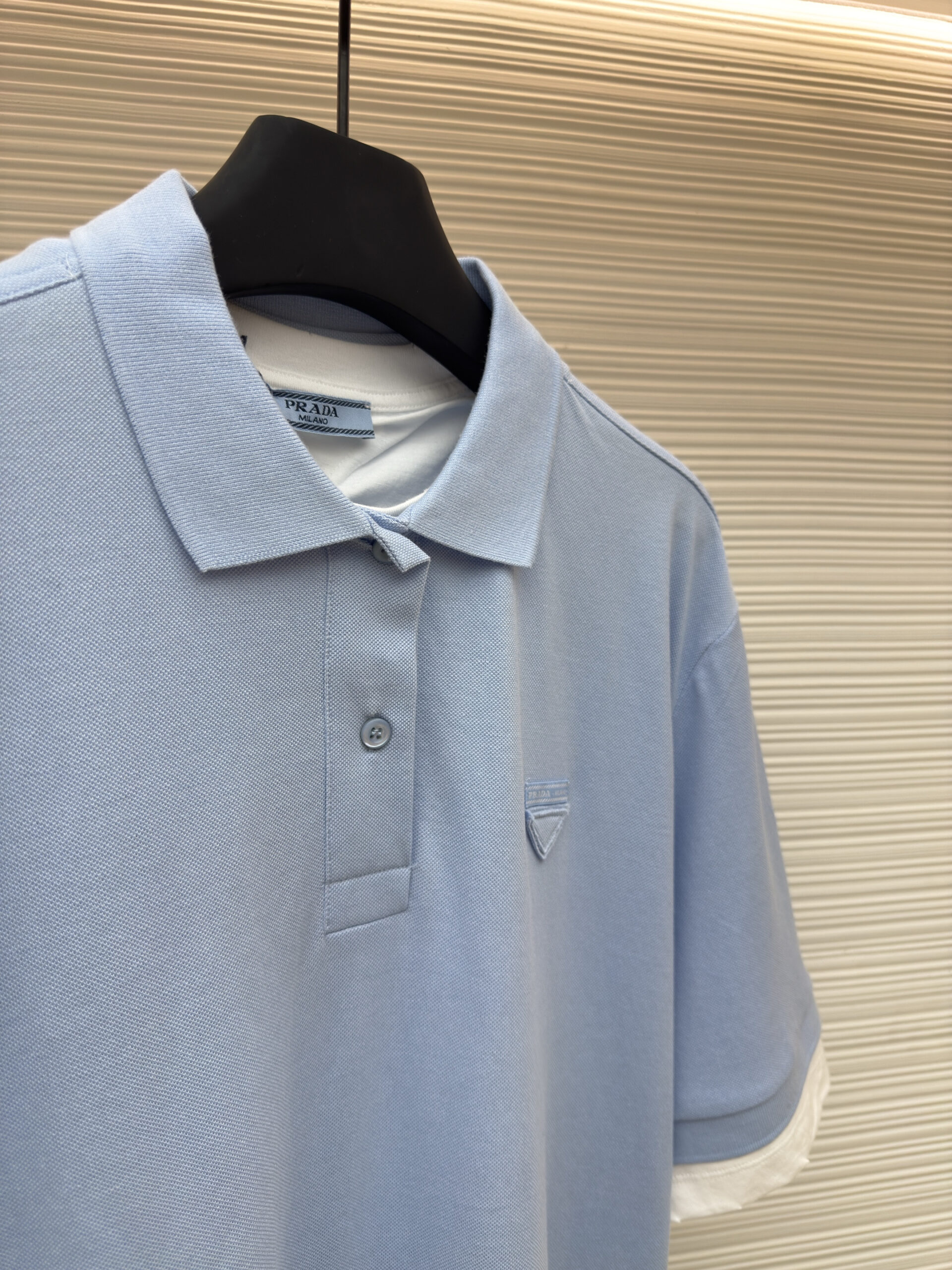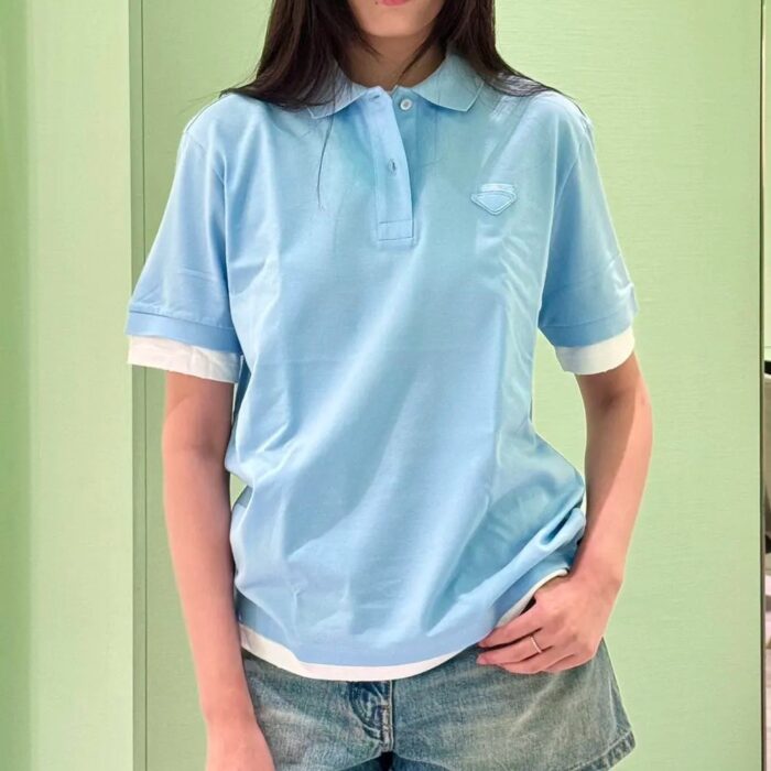 PRADA logo loose POLO Neck T-shirt Blue プラダ logo POLO ネック ゆったり Tシャツ ブルー