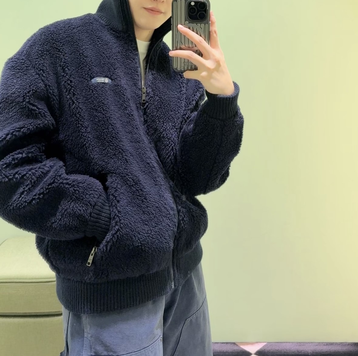 PRADA logo ZIP-UP Fleece jacket Black プラダ LOGO ジップアップ フリース ジャケット ブラック