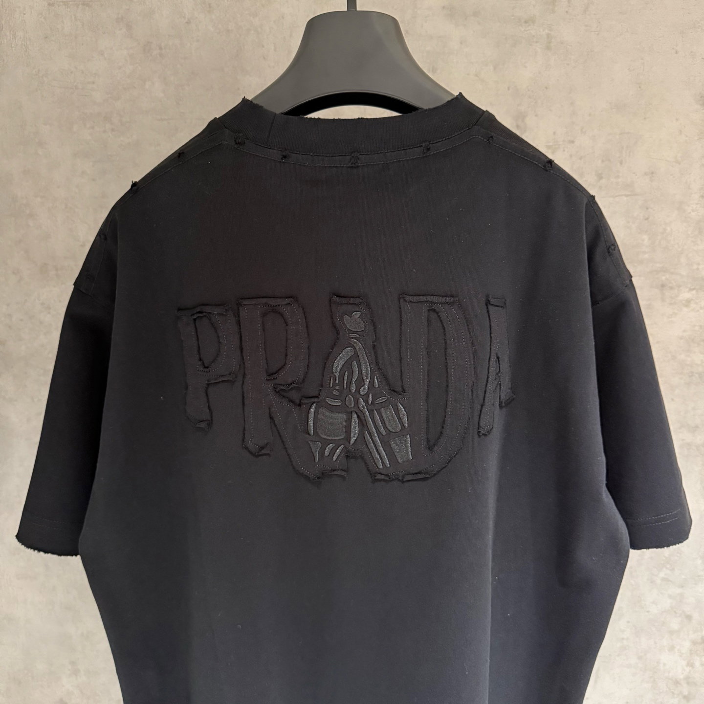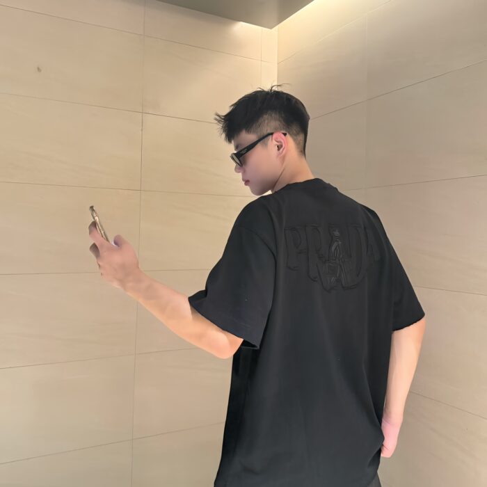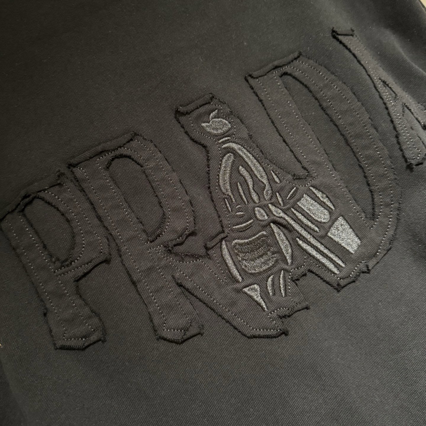 PRADA patch Embroidery logo Round neck loose T-shirt Black プラダ アップリケ 刺繍 logo クルーネック ゆったり Tシャツ ブラック