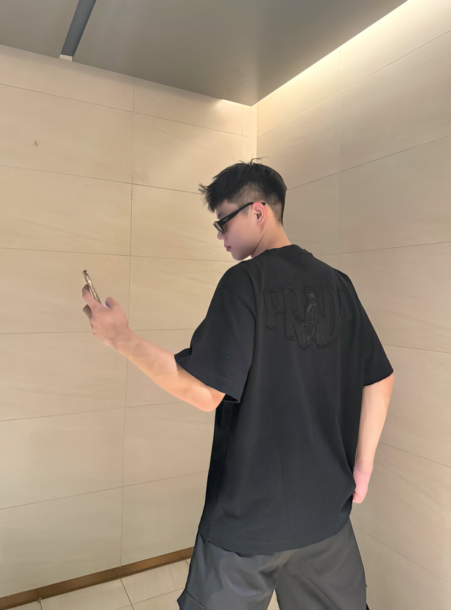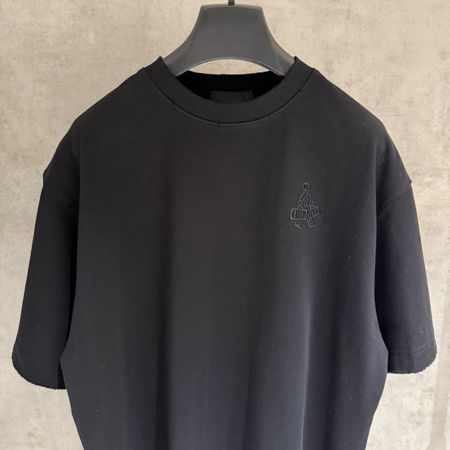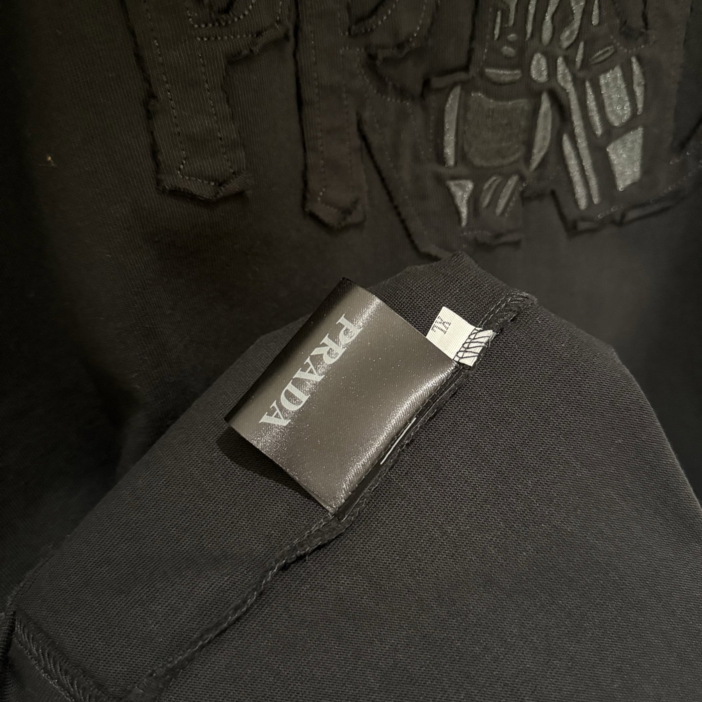PRADA patch Embroidery logo Round neck loose T-shirt Black プラダ アップリケ 刺繍 logo クルーネック ゆったり Tシャツ ブラック