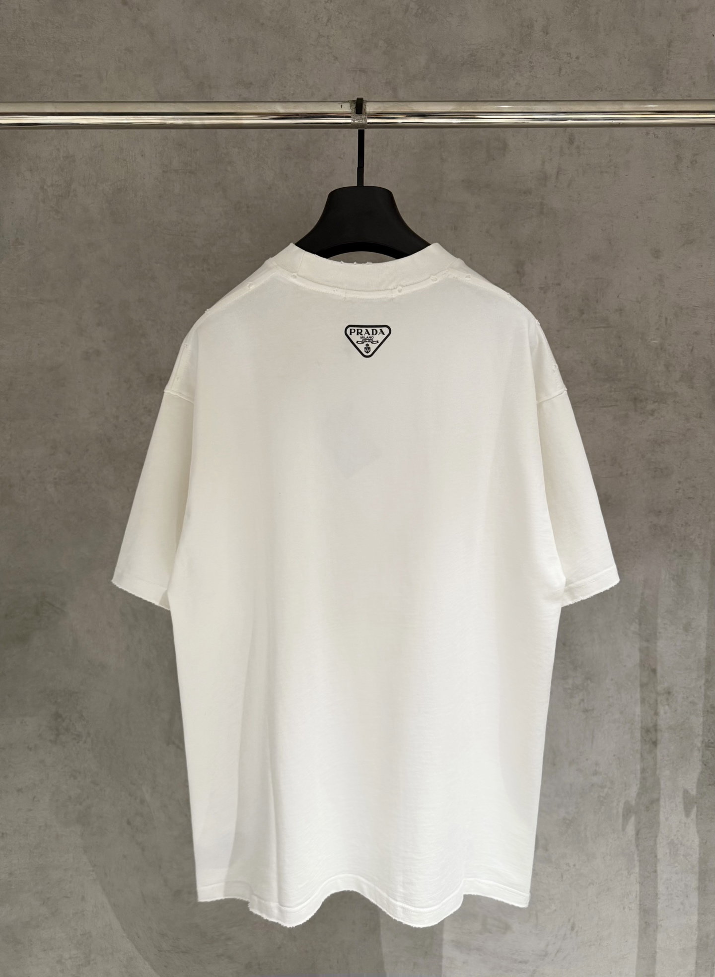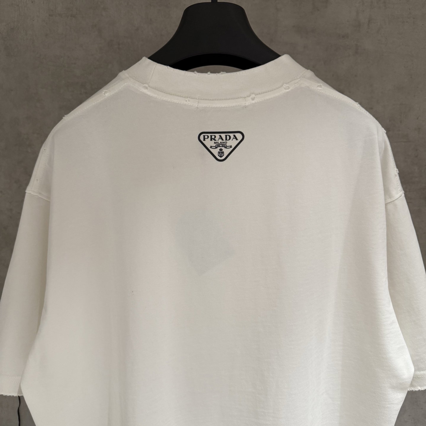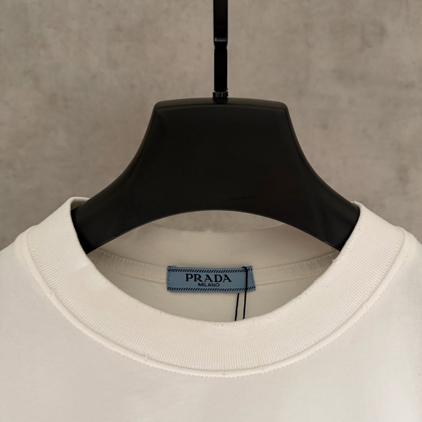PRADA patch Embroidery Logo Round neck loose T-shirt White プラダ アップリケ 刺繍 logo クルーネック ゆったり Tシャツ ホワイト
