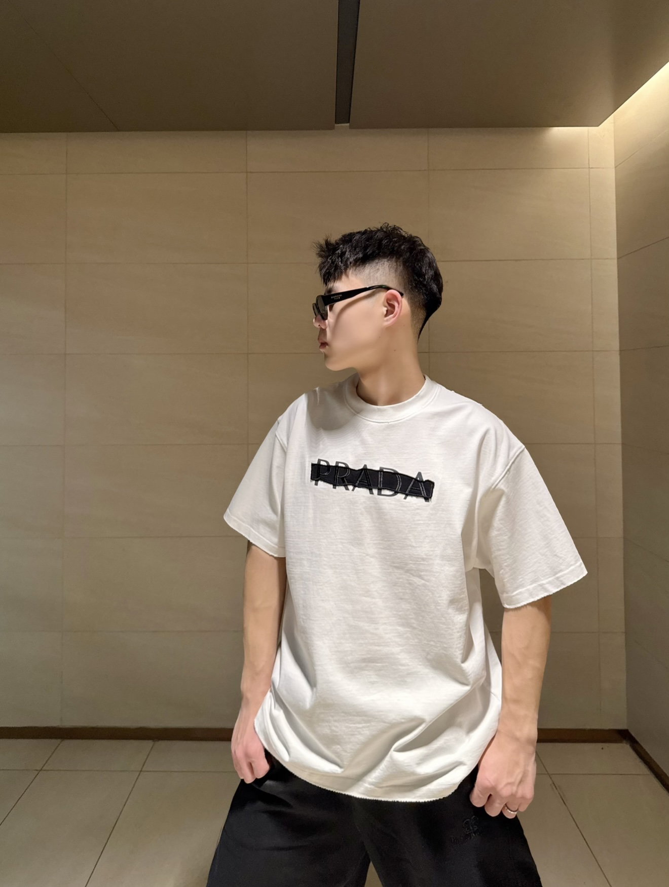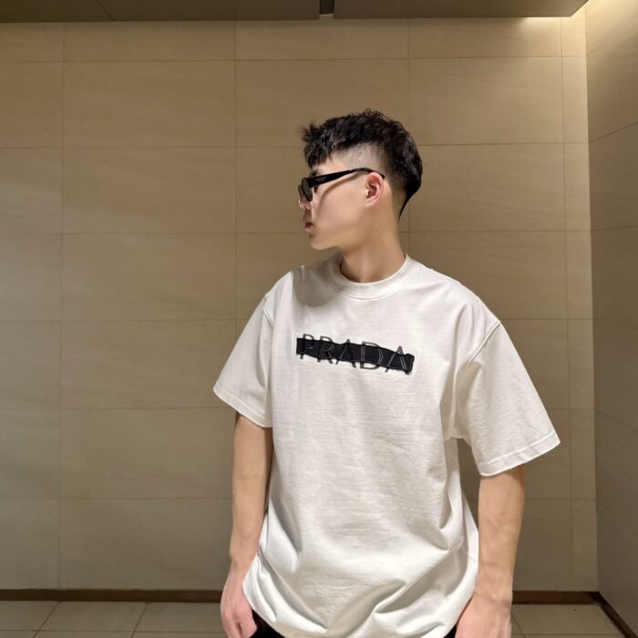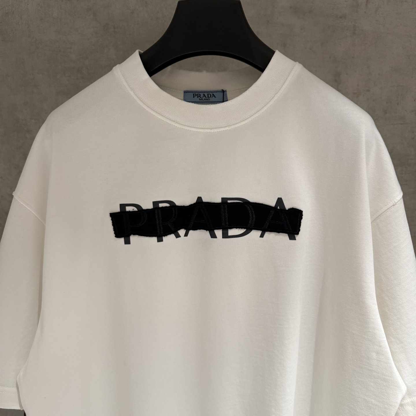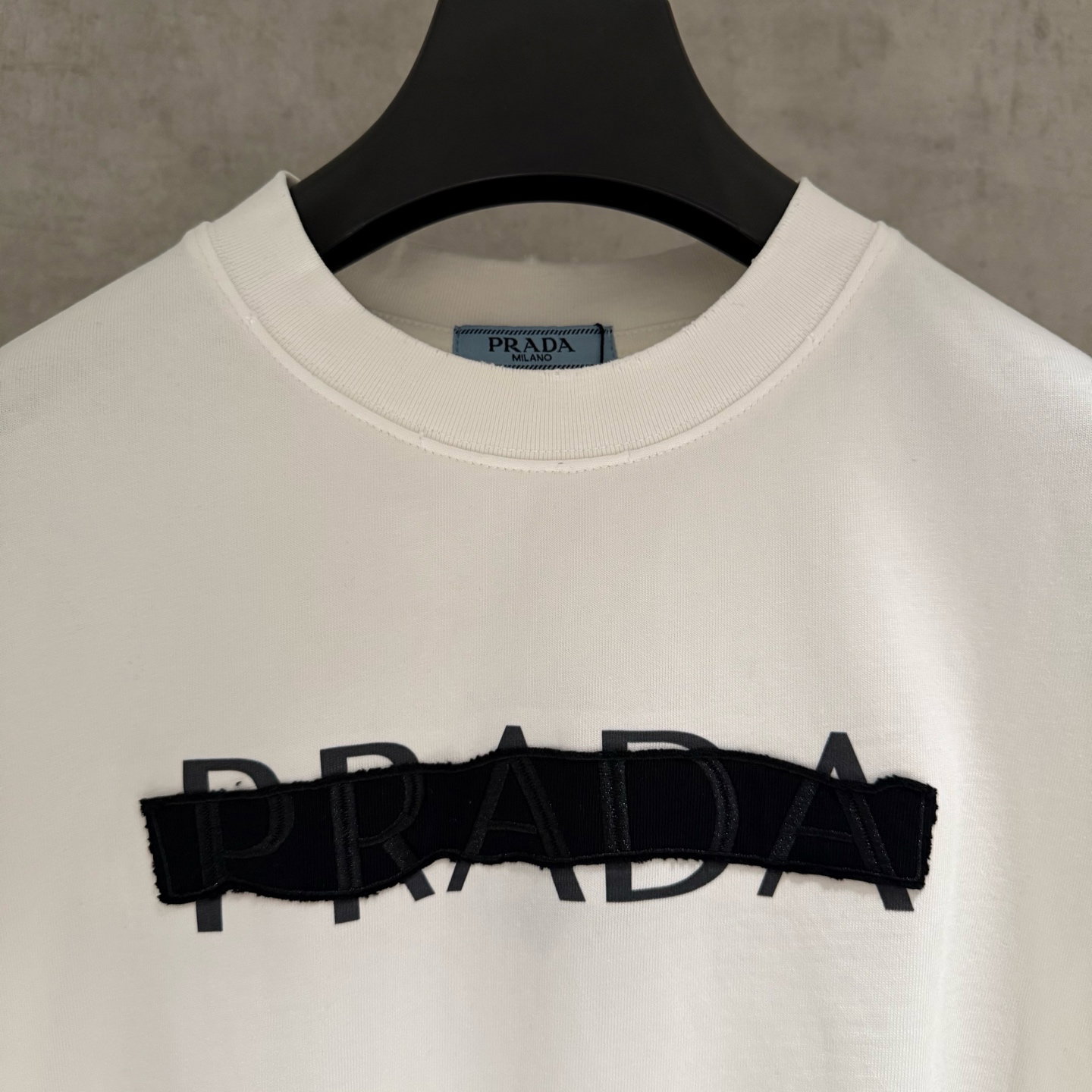 PRADA patch Embroidery Logo Round neck loose T-shirt White プラダ アップリケ 刺繍 logo クルーネック ゆったり Tシャツ ホワイト