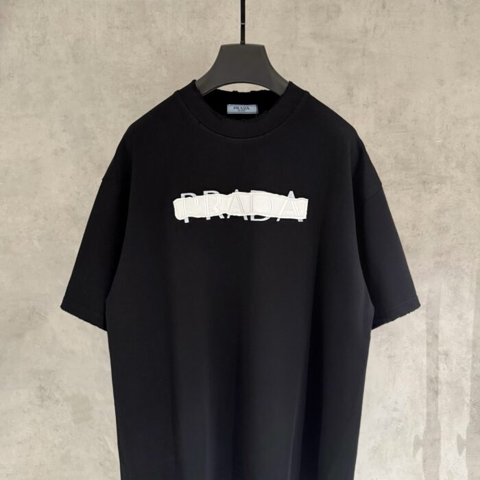 PRADA patch Embroidery Logo Round neck loose T-shirt Black プラダ アップリケ 刺繍 logo クルーネック ゆったり Tシャツ ブラック