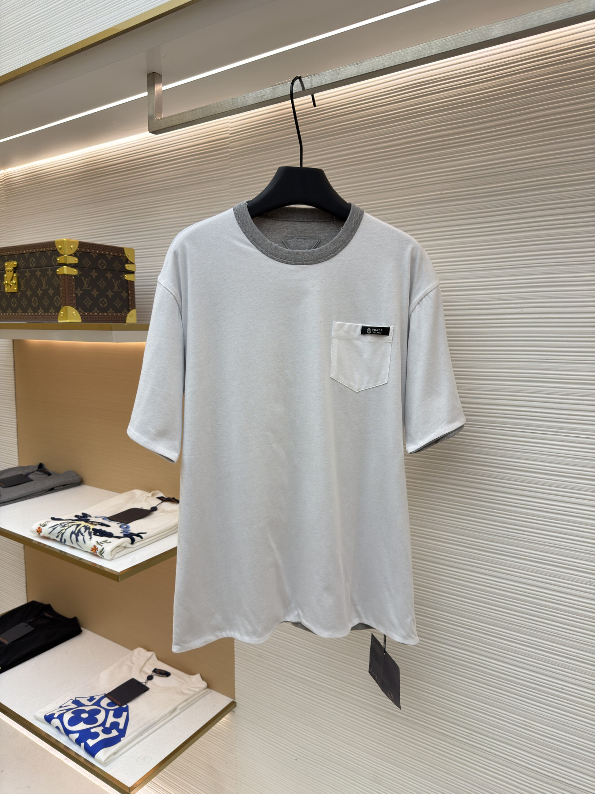 PRADA pocket Logo Reversible loose Round neck T-shirt プラダ ポケット Logo リバーシブル コート ゆったり クルーネック Tシャツ