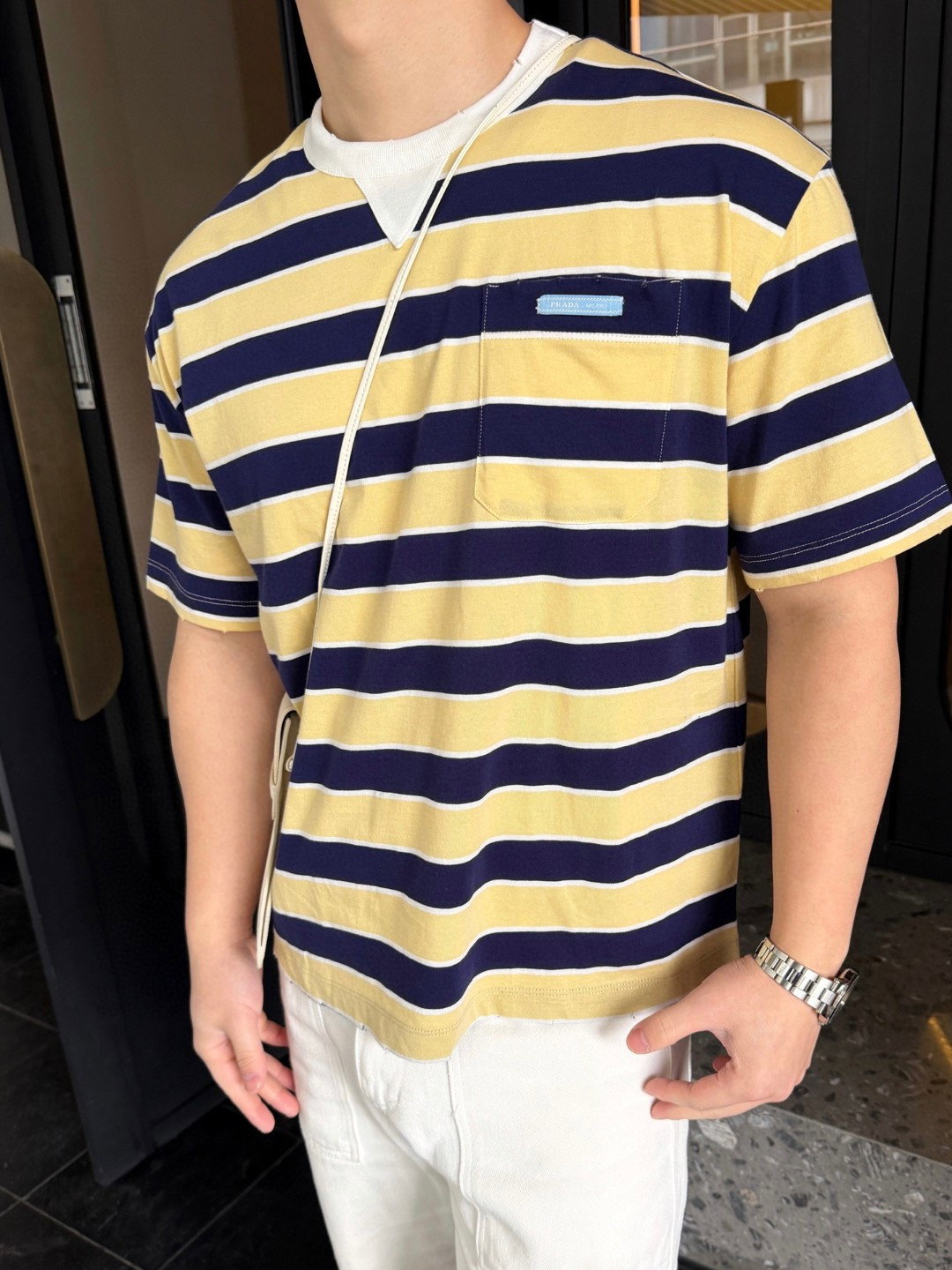 PRADA pocket stripe Logo Round neck loose T-shirt プラダ ポケット ストライプ logo クルーネック ゆったり Tシャツ