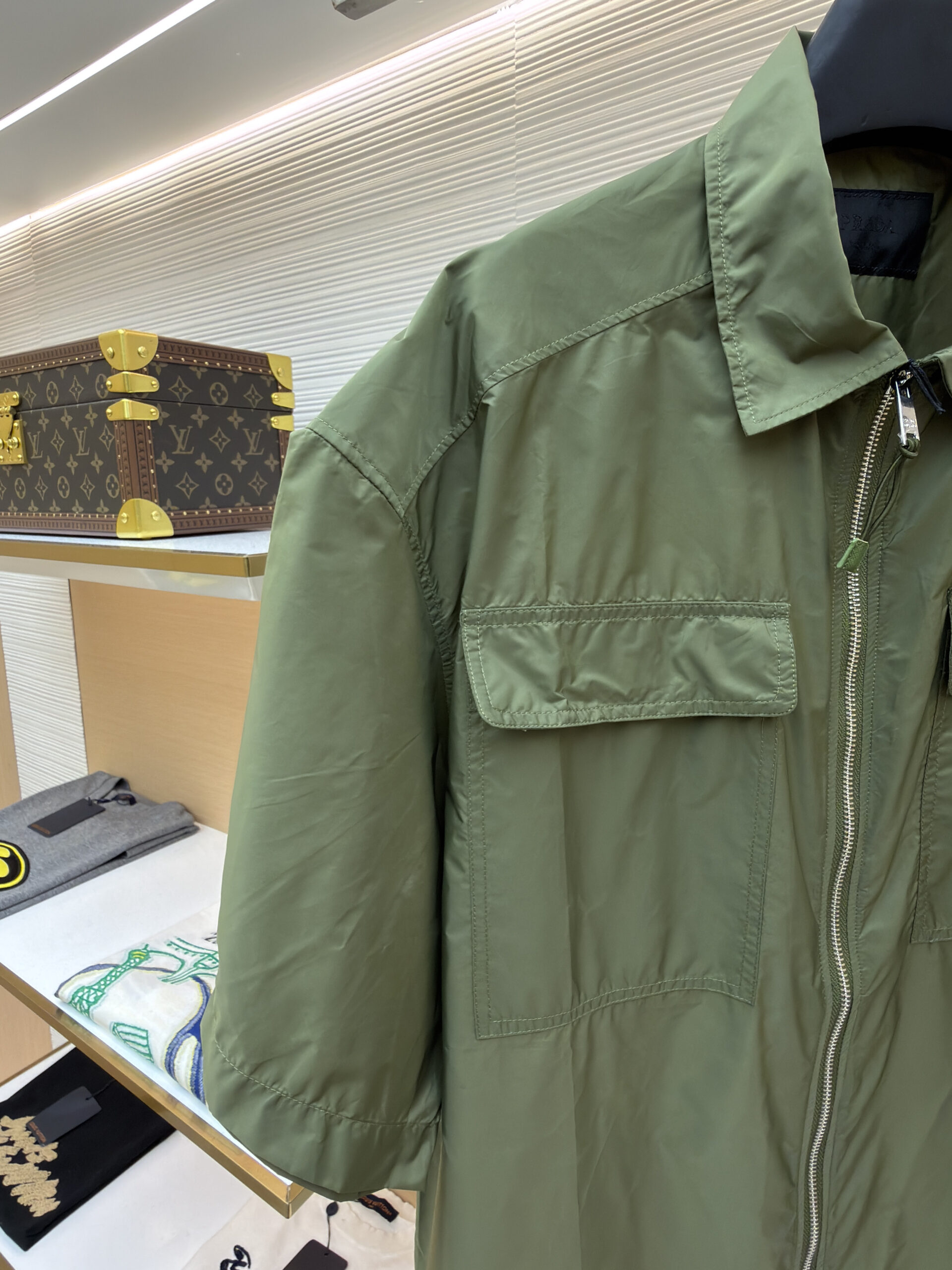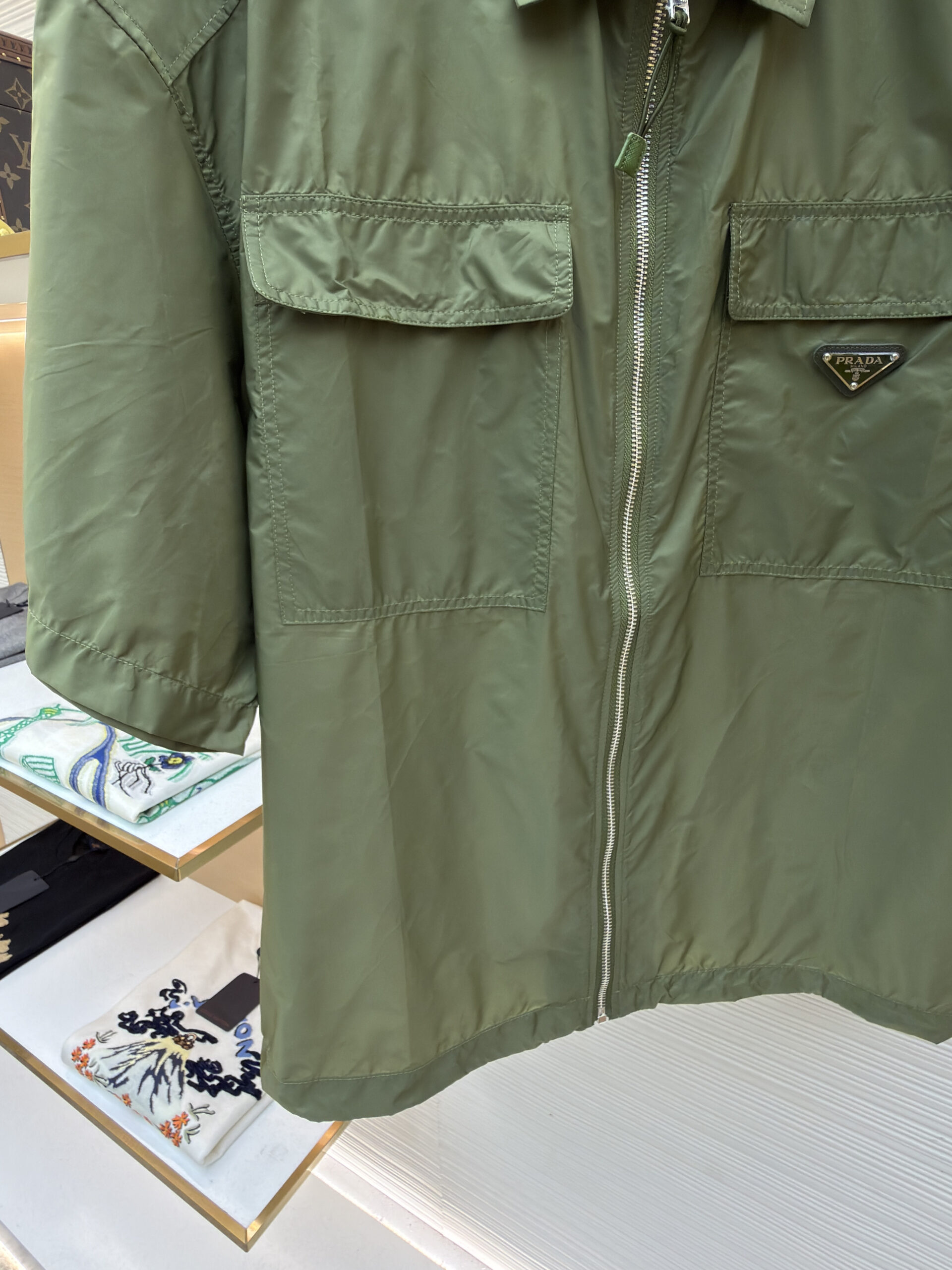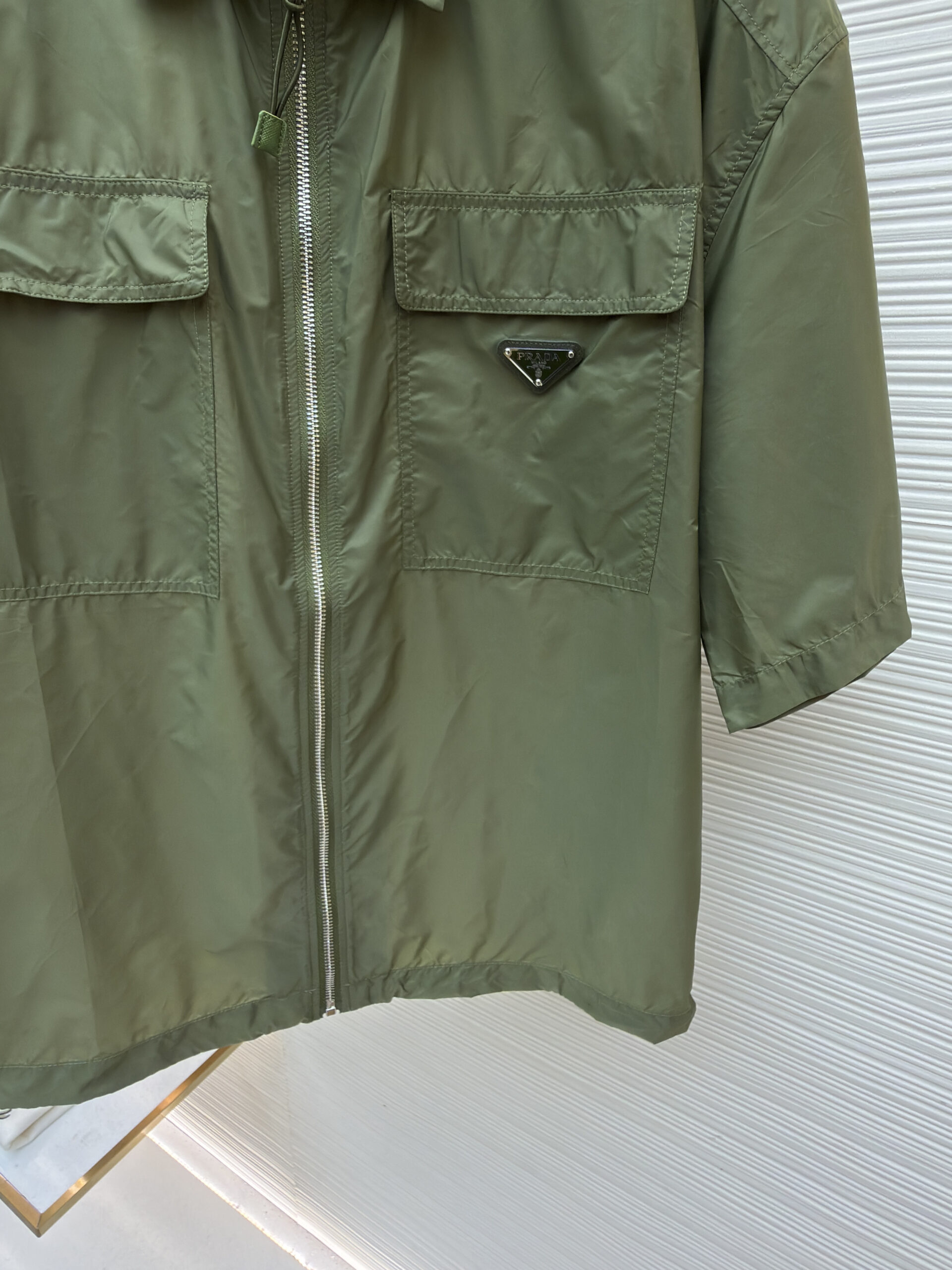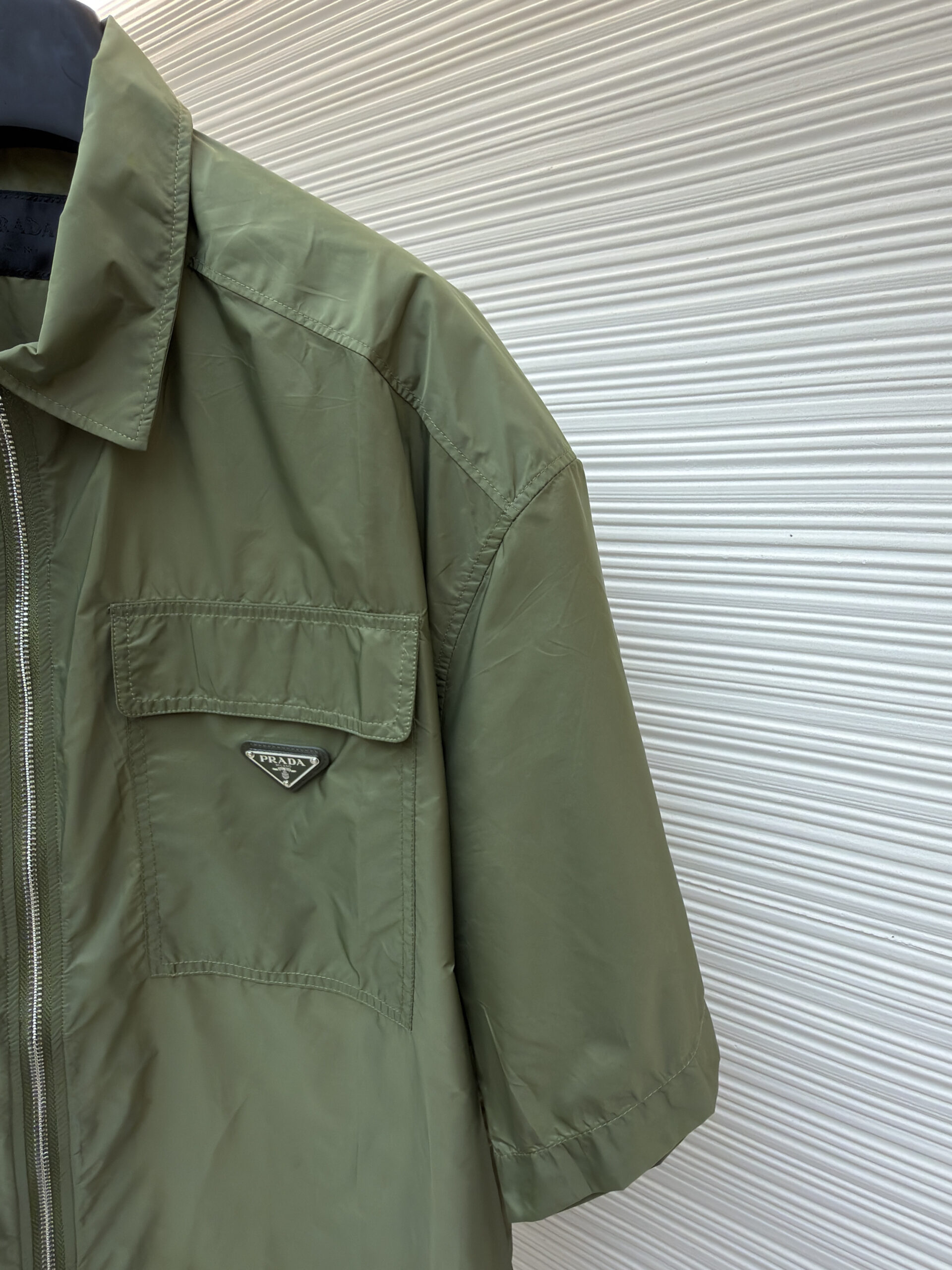 PRADA pocket Triangle Logo loose nylon short-sleeved shirt Green プラダ ポケット 三角ロゴ ゆったり ナイロン 半袖カジュアルシャツ グリーン
