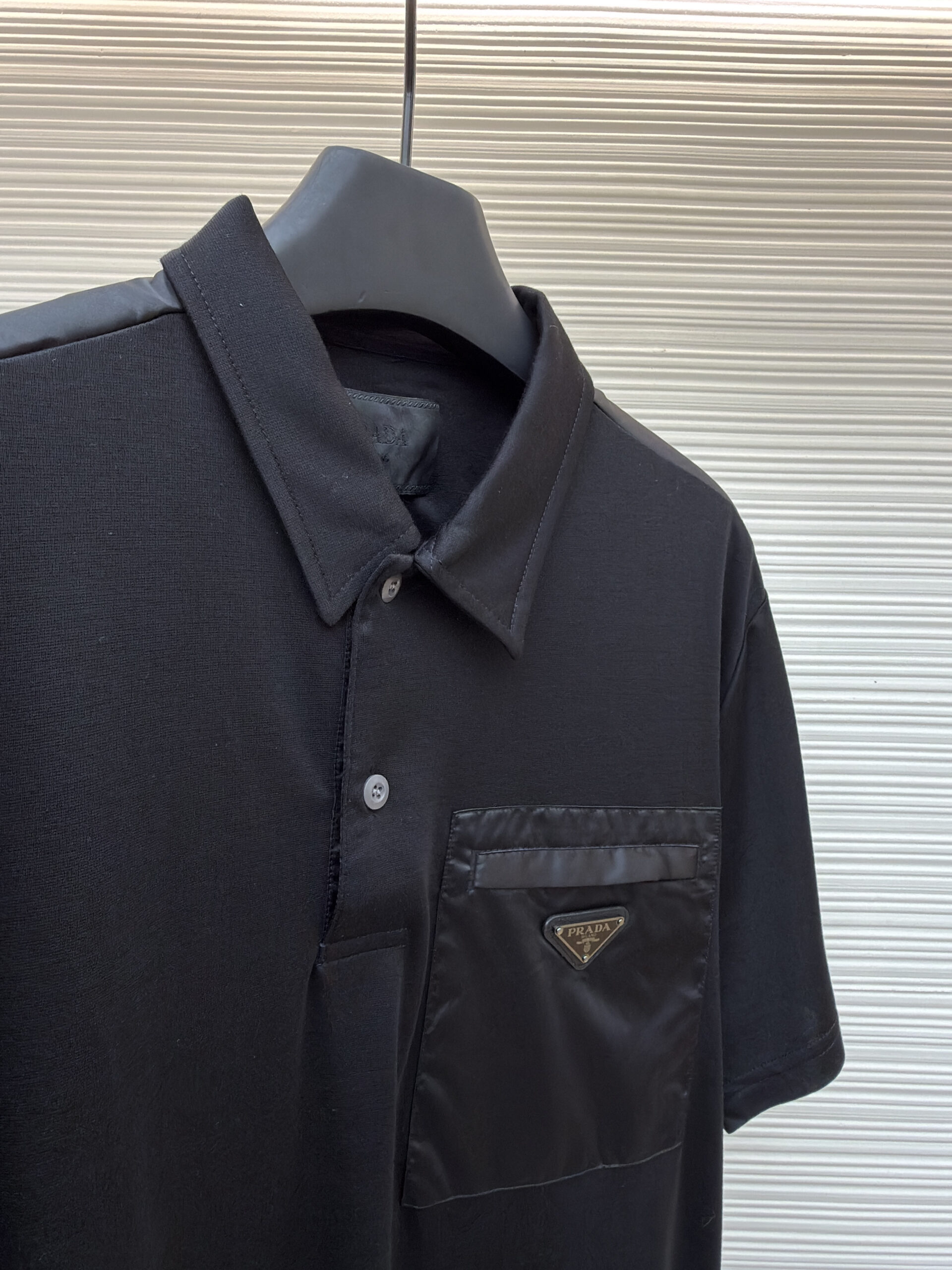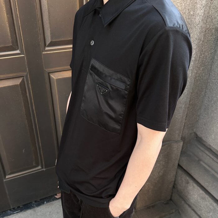PRADA pocket Triangle Logo loose polo neck T-shirt Black プラダ ポケット 三角ロゴ ゆったり poloネック Tシャツ ブラック
