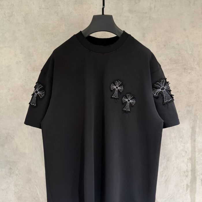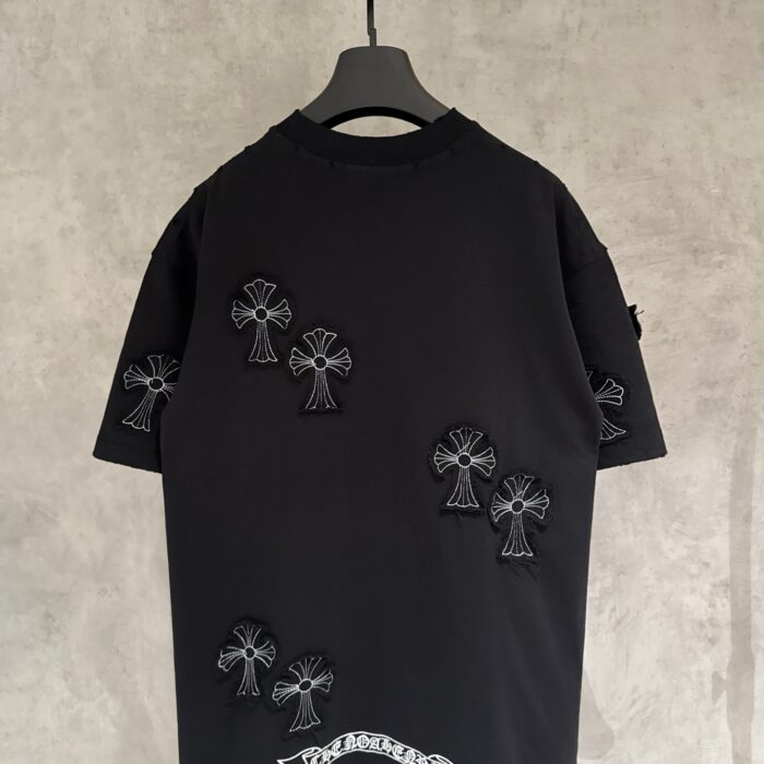 Chrome Hearts patch Embroidery pattern LOGO loose Round neck T-shirt Black クロムハーツ アップリケ 刺繍 パターン LOGO ゆったり クルーネック Tシャツ ブラック