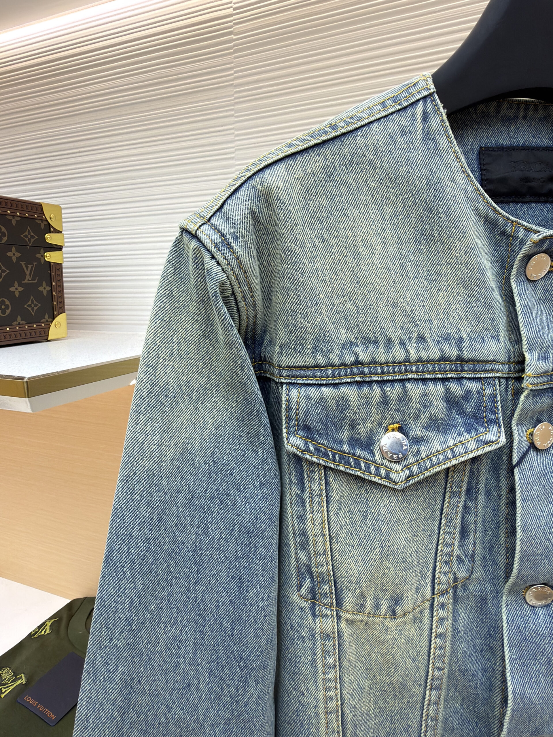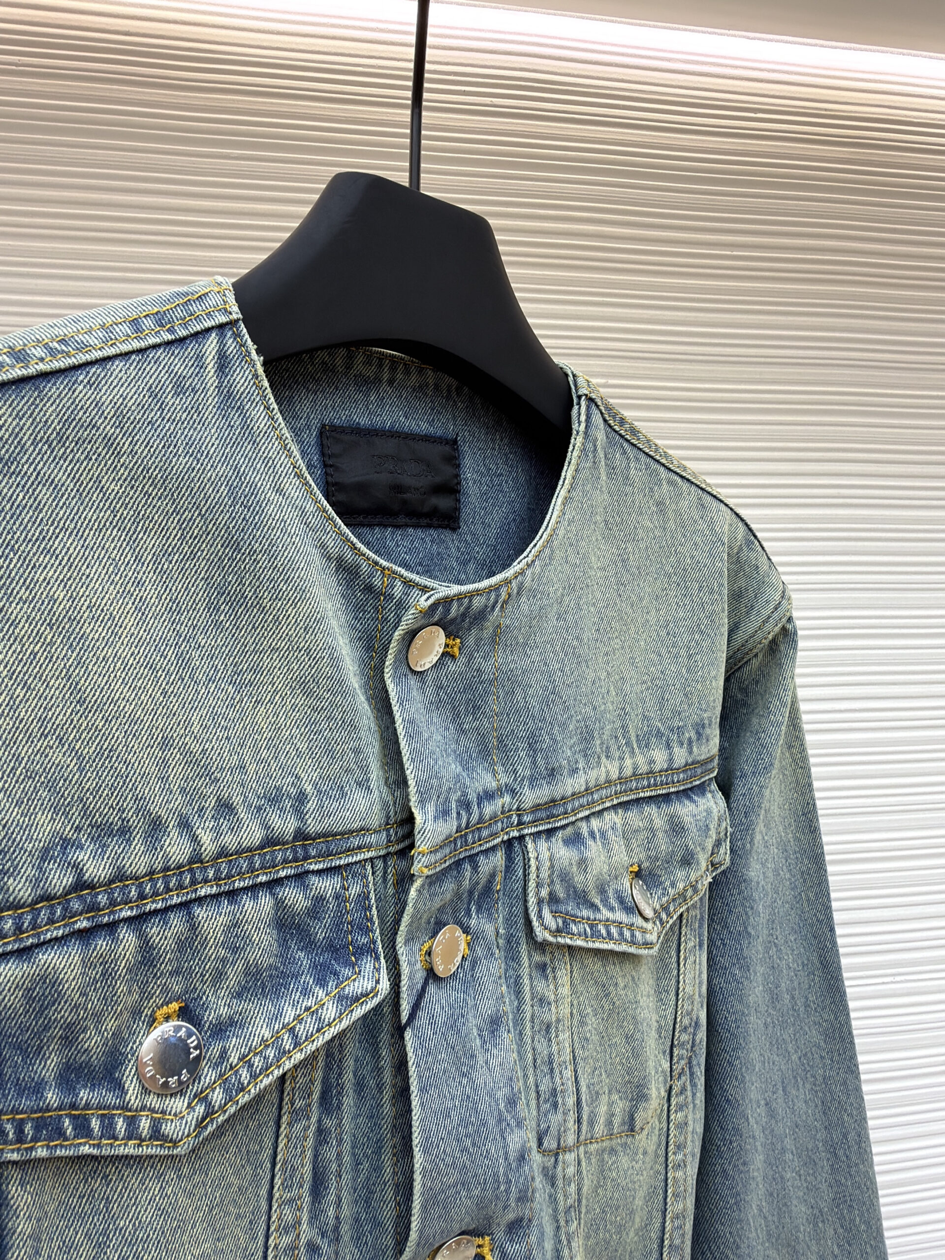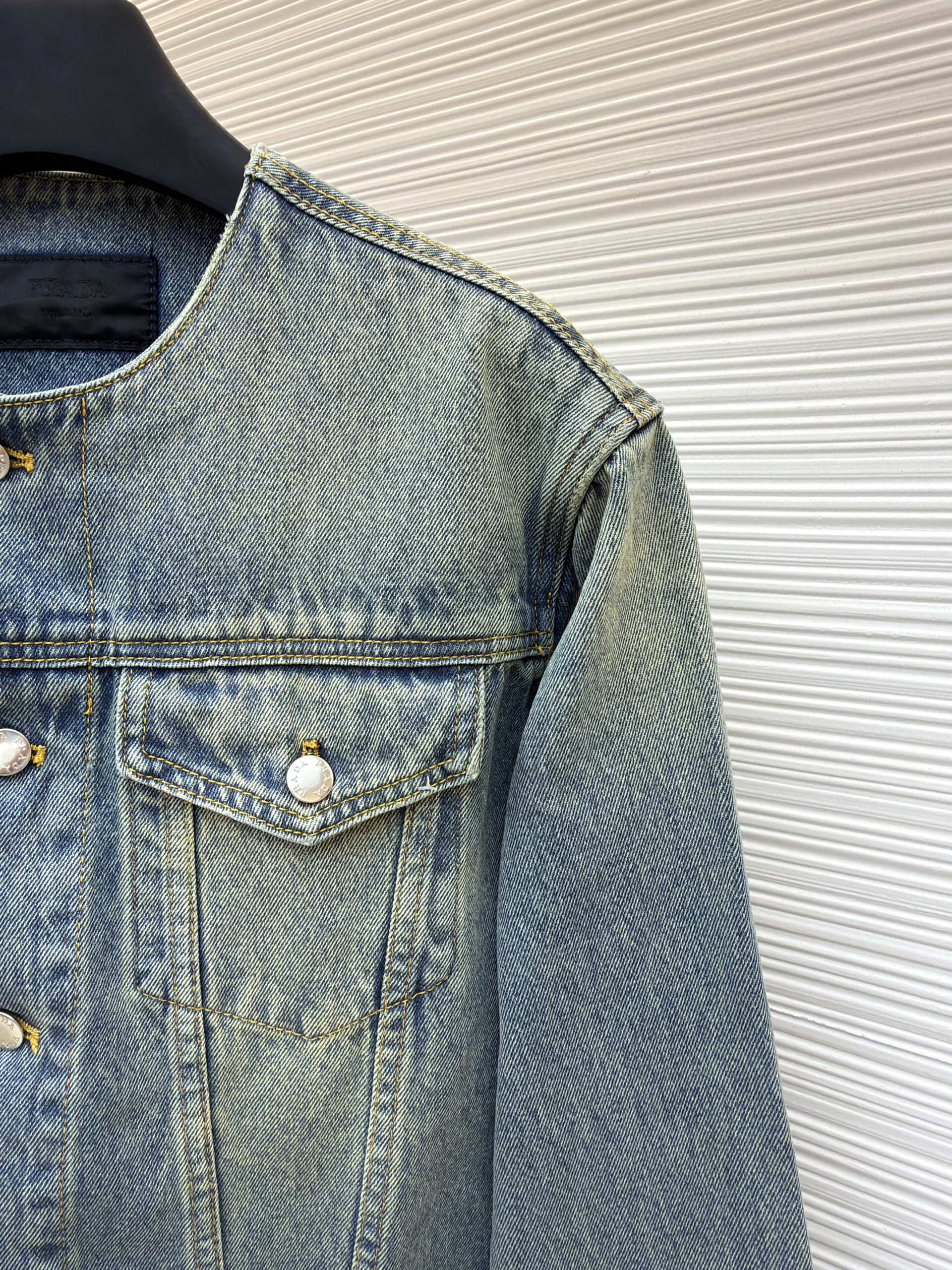 PRADA Triangle Logo DENIM jacket washed Blue プラダ 三角ロゴ デニム ジャケット 洗いブルー