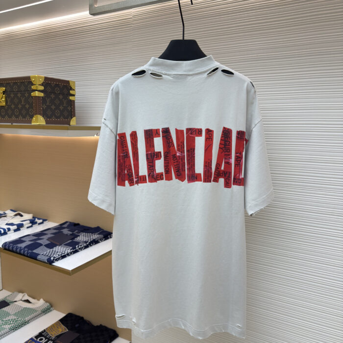 Balenciaga distressed tape pattern Round neck T-shirt White バレンシアガ ディストレス テープ パターン クルーネック Tシャツ ホワイト
