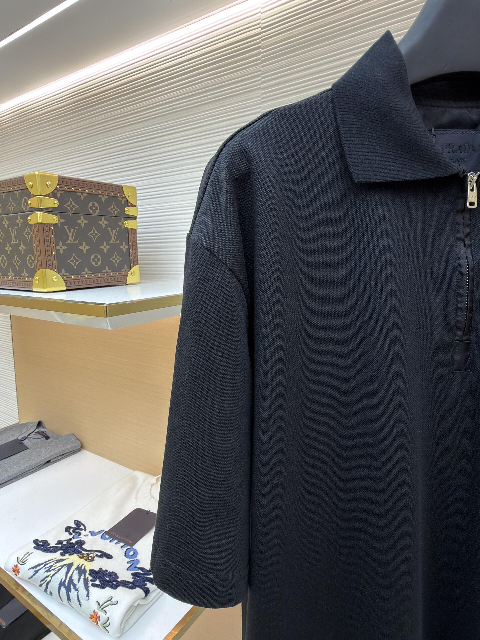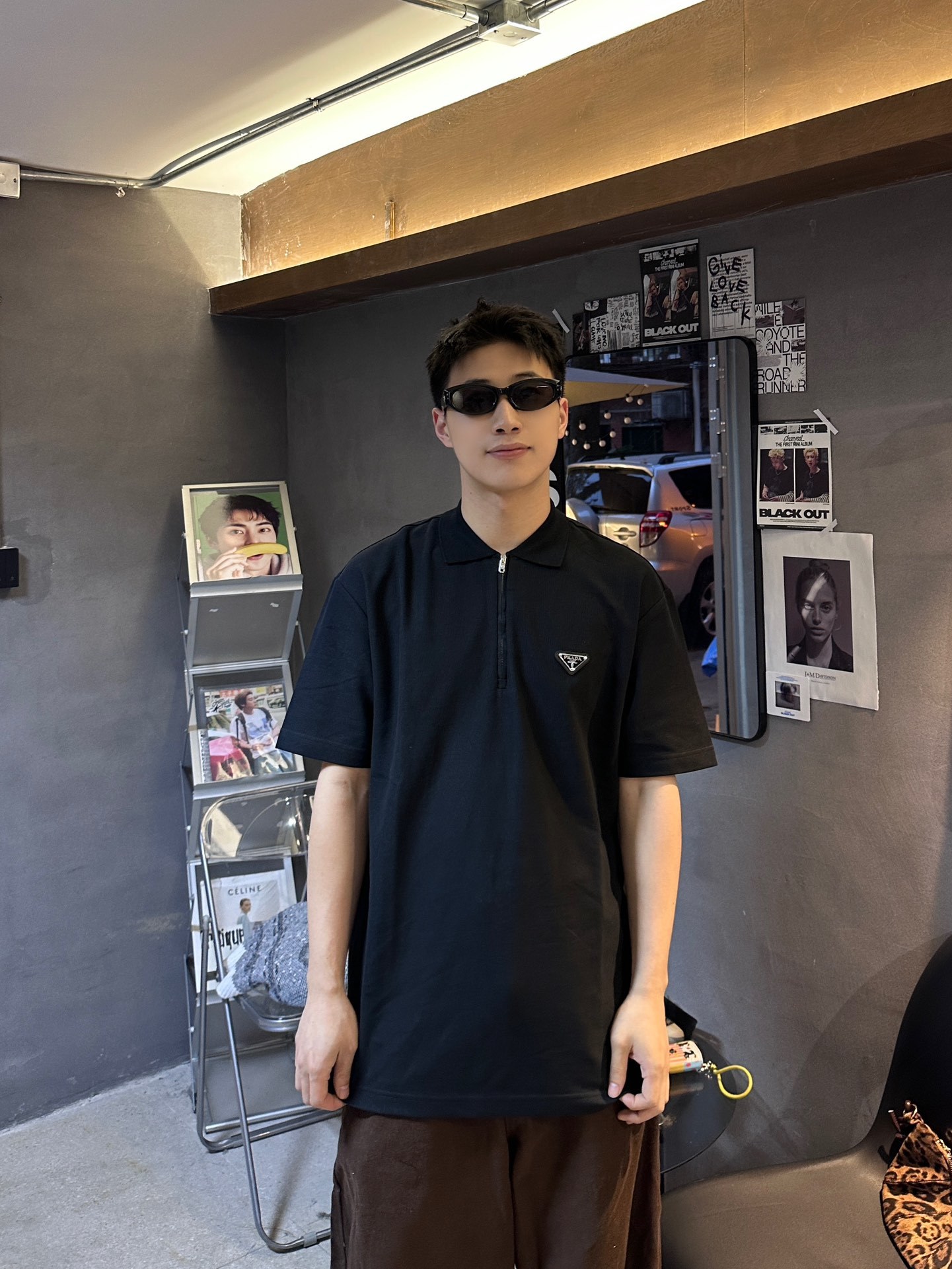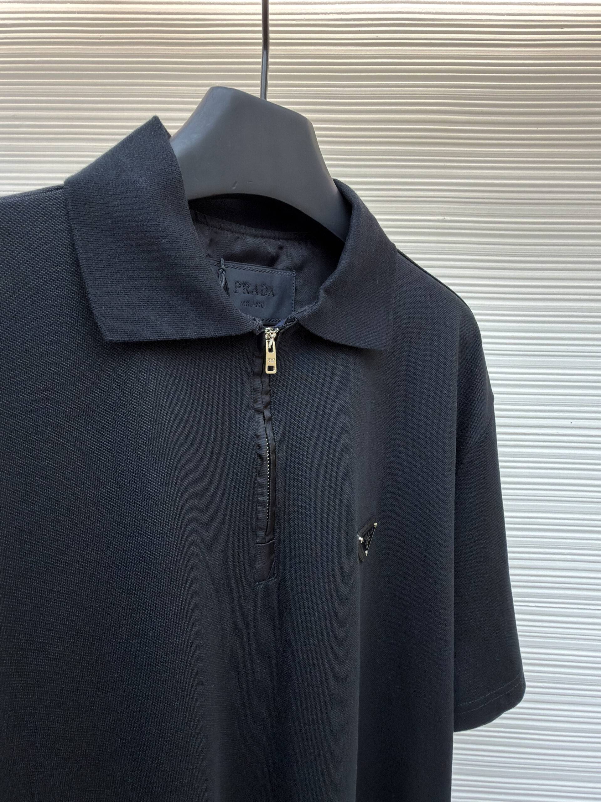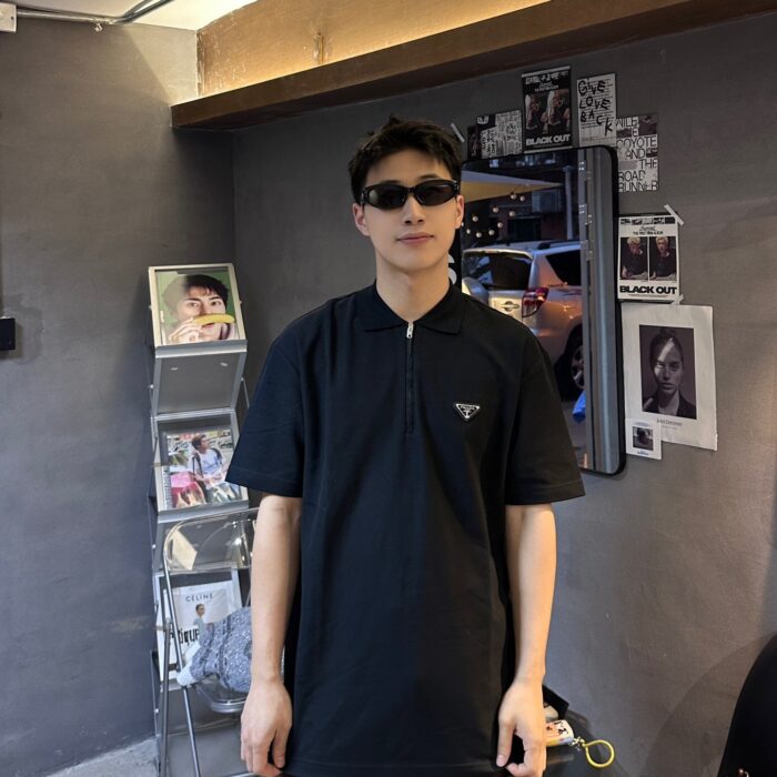 PRADA Triangle Logo loose polo neck T-shirt Black プラダ 三角ロゴ ゆったり poloネック Tシャツ ブラック
