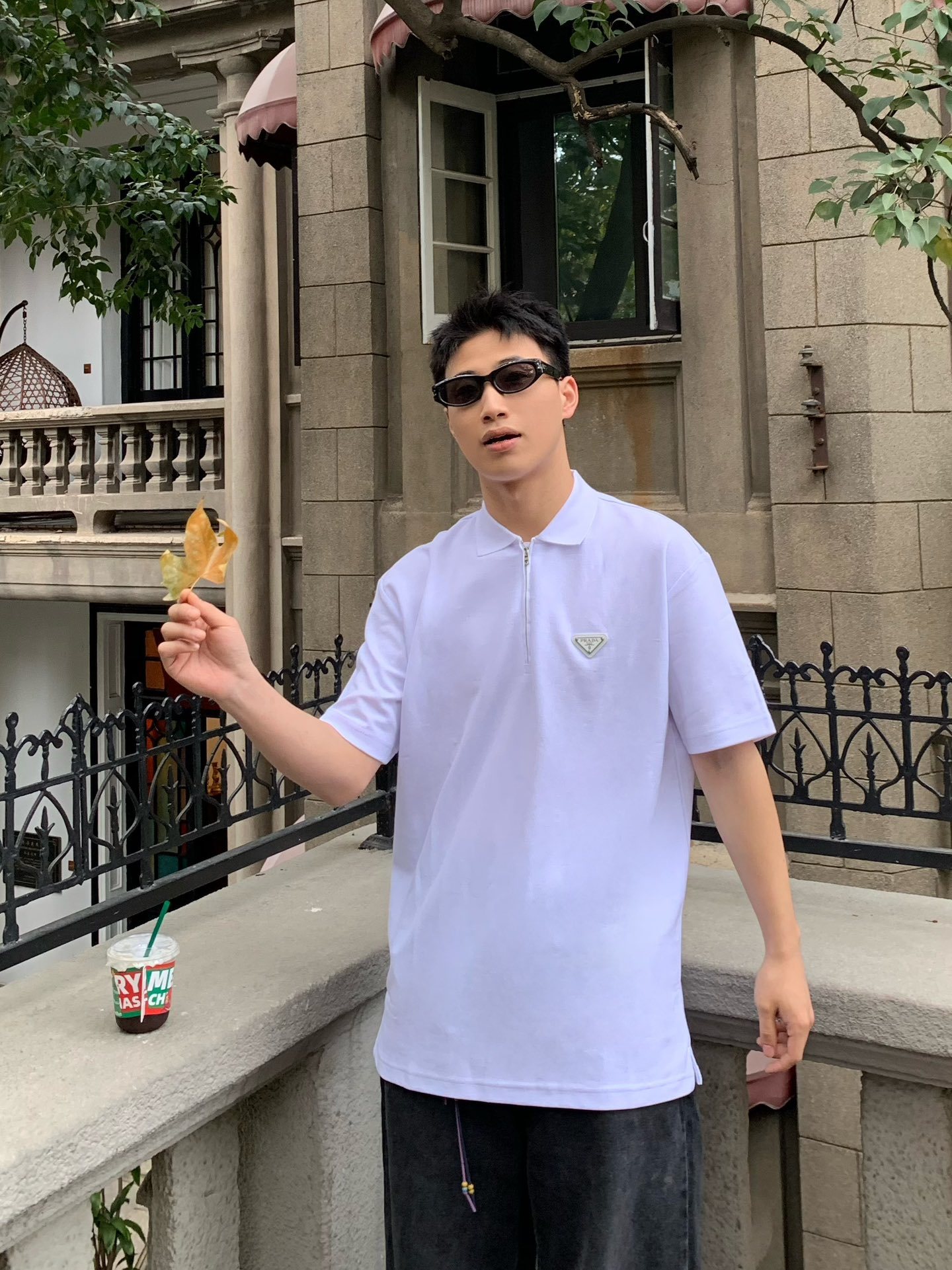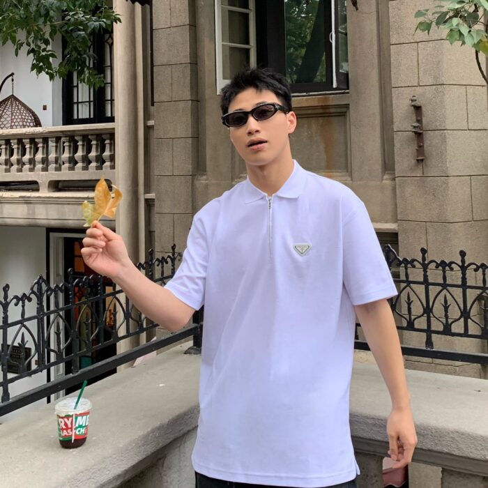 PRADA Triangle Logo loose polo neck T-shirt White プラダ 三角ロゴ ゆったり poloネック Tシャツ ホワイト