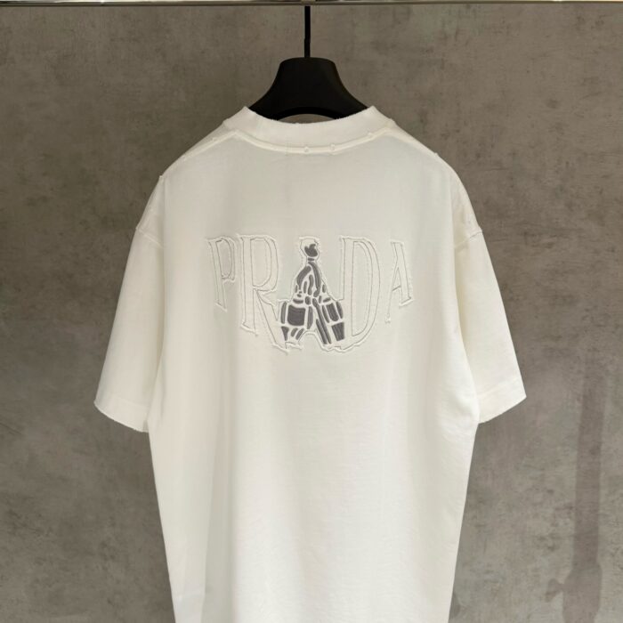 PRADA patch Embroidery logo Round neck loose T-shirt White プラダ アップリケ 刺繍 logo クルーネック ゆったり Tシャツ ホワイト