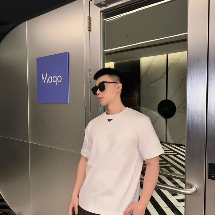 PRADA Triangle Logo loose Round neck T-shirt White プラダ 三角ロゴ ゆったり クルーネック Tシャツ ホワイト