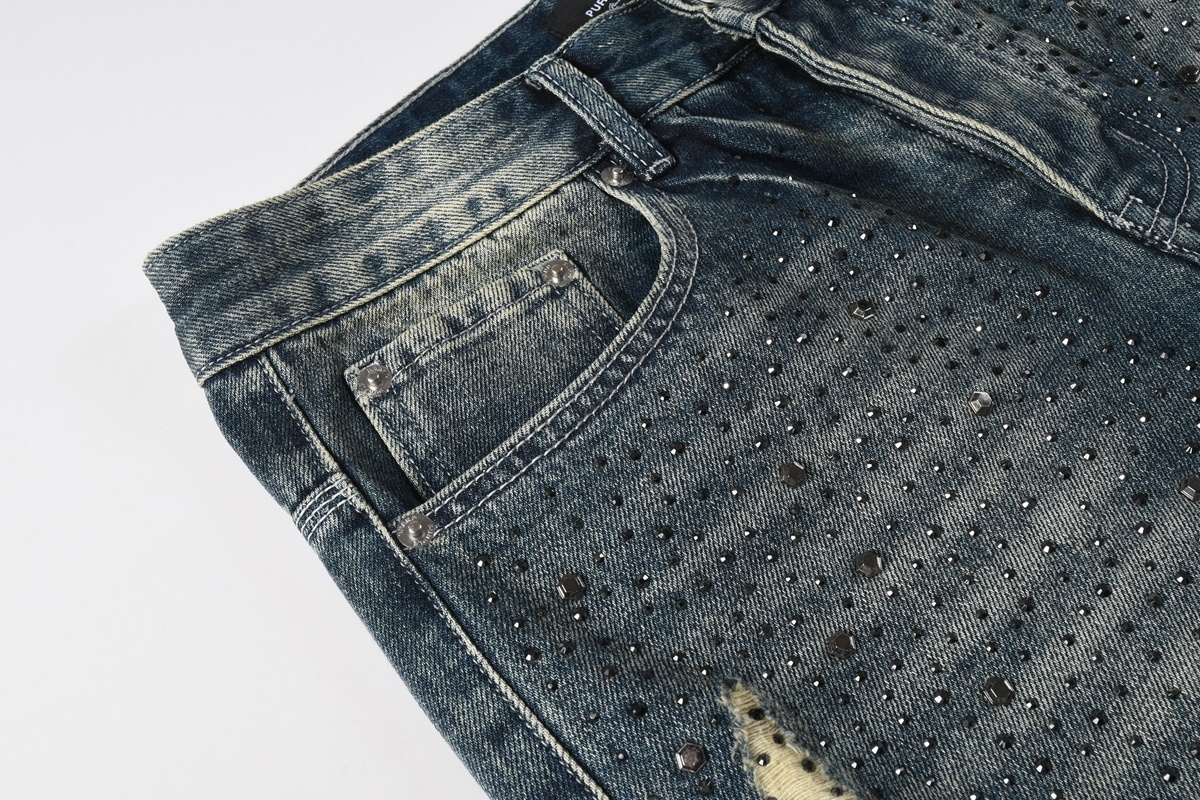 PURPLE BRAND パープルブランド rhinestone print DENIM JEANS ストレート ラインストーンプリント​ デニムパンツ