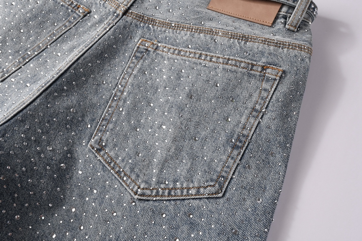 PURPLE BRAND パープルブランド rhinestone print DENIM SHORTS JEANS ラインストーンプリント デニムパンツ ジーンズショーツ