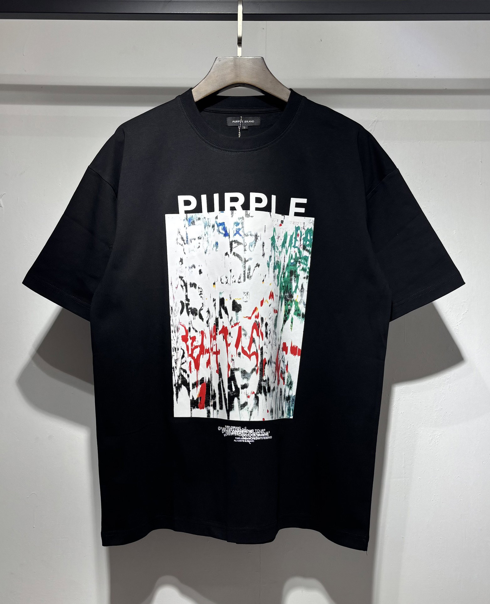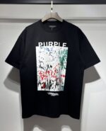 PURPLE BRAND Print Letter graffiti pattern loose Round neck T-shirt Black パープルブランド プリント モジ グラフィティ パターン ゆったり クルーネック Tシャツ ブラック