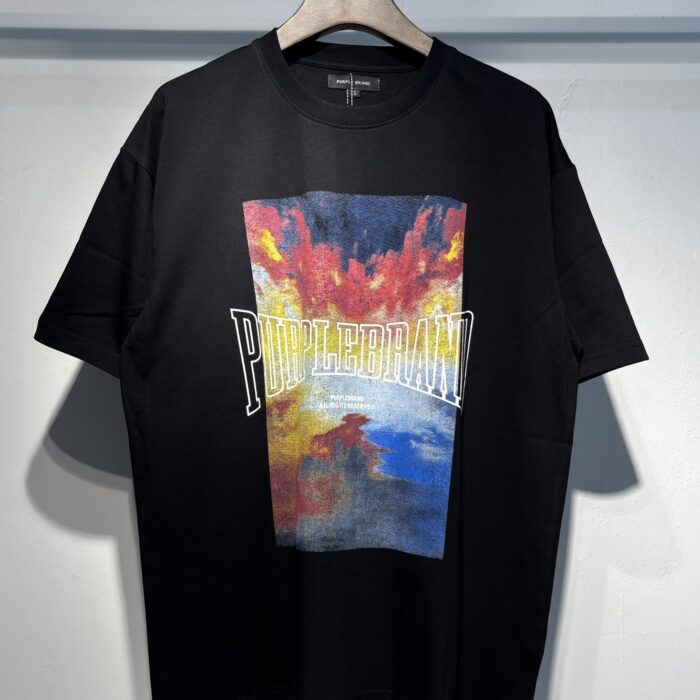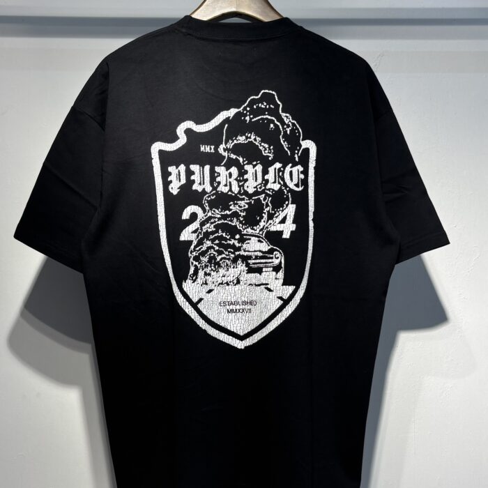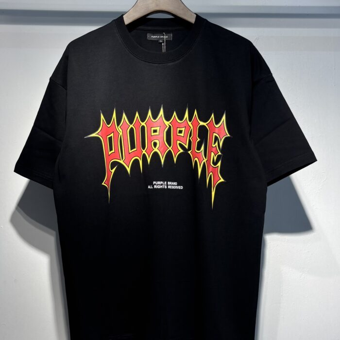 PURPLE BRAND Print Letter pattern loose Round neck T-shirt Black パープルブランド プリント モジ パターン ゆったり クルーネック Tシャツ ブラック